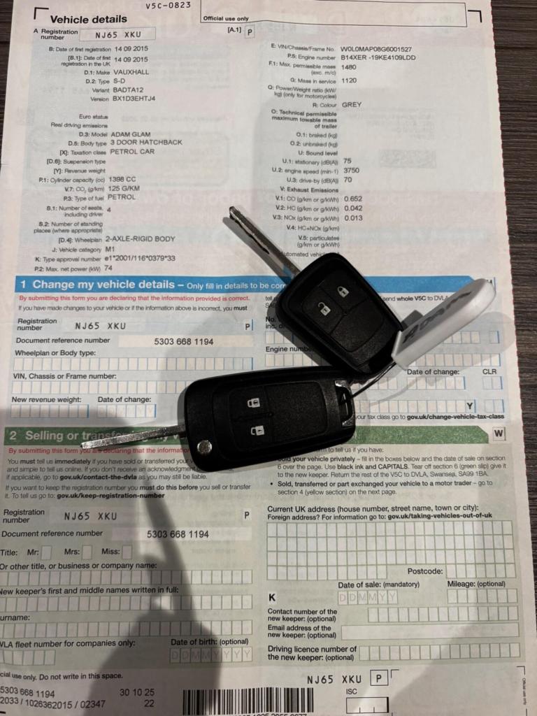 Posting for 1+ years2015 Vauxhall ADAM 1.4 16v GLAM Euro 5 3dr HATCHBACK Petrol Manual