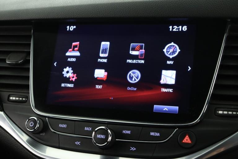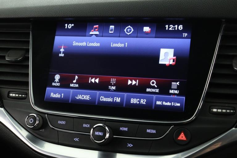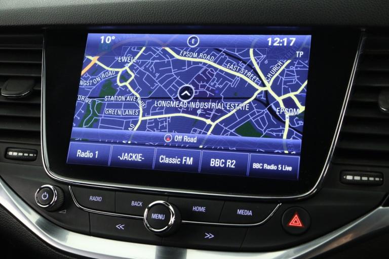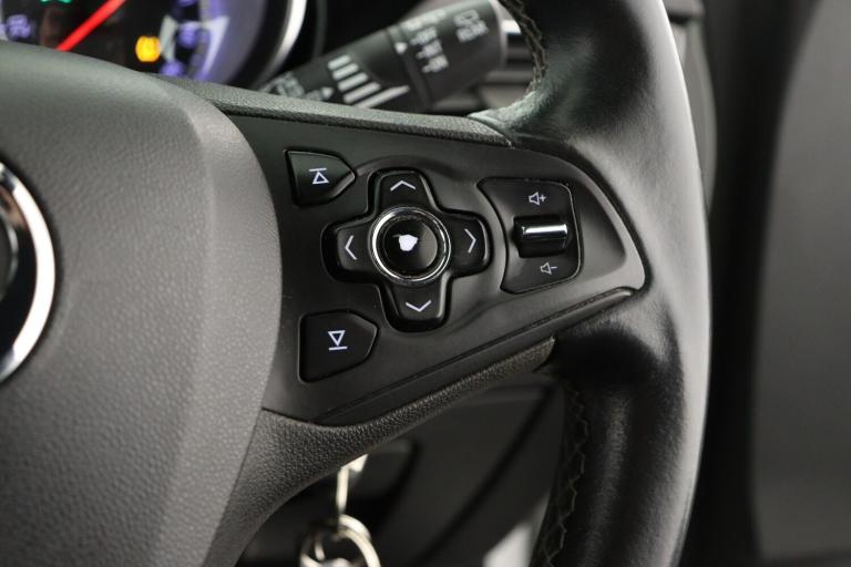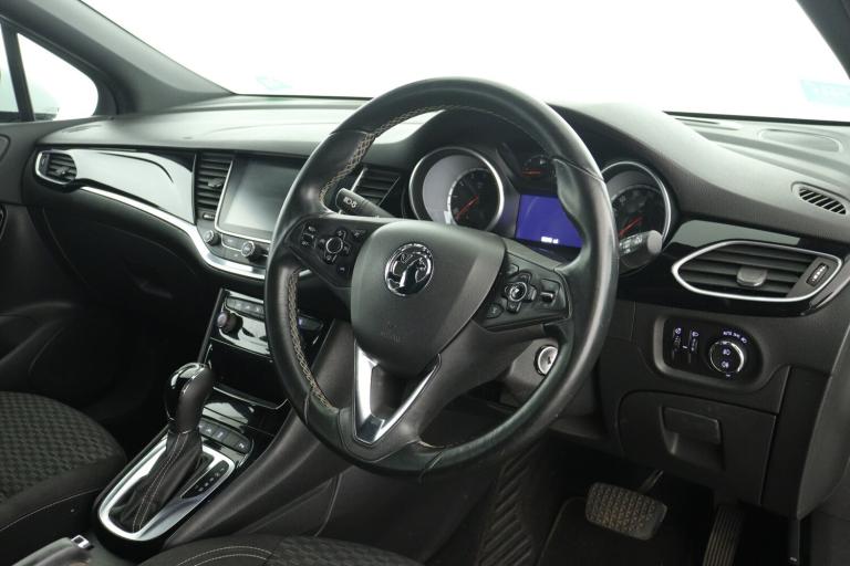 ..Apple car play/Android Auto, Cruise control + speed limiter, Electric speed sensitive power steering, External temperature gauge, Intellilink Nav 900 European sat nav with 8'' touch screen, Low fuel level warning light, Mobile App interface, Multi function trip computer, Rev counter, Service indicator, Sports switch, Vauxhall OnStar emergency assistance, Voice control system, 6 speakers, Bluetooth connectivity including audio streaming, DAB Digital radio, Steering wheel mounted audio controls, USB port, Adaptive brake lights, Body colour door handles, Body colour rear roof spoiler, Body coloured door mirrors, Chrome effect upper window trim, Chrome front grille, Chrome headlight surround, Door to door illumination, Electrically adjustable and heated door mirrors, Front fog lamps, Gloss black finish B pillar, Gloss black finish C pillar, Hazard warning lamps, Heated rear window, Intermittent rear wash/wipe, LED daytime running lights, One touch electric front/rear windows, Shark fin roof aerial, Silver roof rails, Solar glass windscreen, Tinted windscreen, Trailer Stability Programme, 12V power point front, 12V socket in luggage compartment, 3 spoke leather covered steering wheel, 4 Lashing eyes in boot, 60/40 split rear seats, Adjustable front armrest, Centre console with covered storage and cupholders, Chrome interior door handles, Driver's storage box, Driver/passenger sunvisors, Formula cloth upholstery, Front and rear door pockets, Front reading lights, Front red LED ambient lighting, Front seat back storage pockets, Front/rear courtesy lights, Glovebox, Height adjustable front/rear head restraints, Illuminated load area, Illuminated vanity mirrors, Isofix system on outer rear seats, Leather steering wheel, Luggage compartment cover, Reach + rake adjustable steering column, Under floor storage in luggage area, Driving assistance pack 1 - Astra, 3x3 point rear seatbelts, ABS, Child locks on rear doors, Driver/Front Passenger airbags, ESP, Front and rear curtain airbags, Front seat side impact airbags, Hill start assist, Passenger airbag deactivate switch, Pedal release system, Seatbelt pretensioners on front/outer rear seats, Tyre pressure monitoring system, Deadlock, Electronic engine immobiliser, Locking wheel bolts, Remote central locking, Remote ultrasonic alarm system