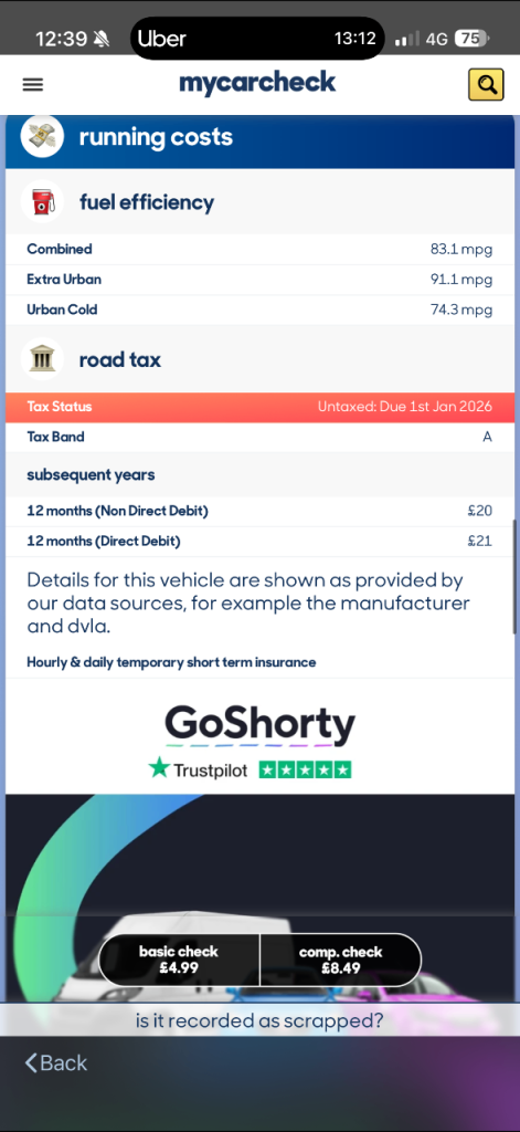Buy the full report for guaranteed data accuracy, outstanding finance, valuation, milage check & VIN match for £9.99 (normally £19.99)