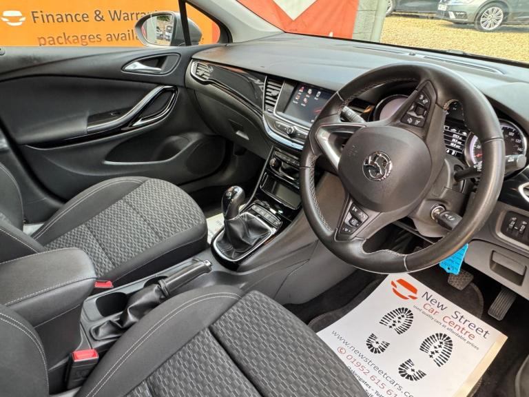 This 2019 Vauxhall Astra i Turbo SRi is presented with a full 12 months MOT for your peace of mind. As a Euro 6 compliant model, it features a responsive 1.4 litre petrol engine. Inside, you'll find an AGR approved Drivers Ergonomic Active Seat, complemented by a Sports Style Front Passenger Seat, ensuring comfort on every journey. Practicality is also key, with a storage compartment in the centre console and a generous boot space perfect for luggage or shopping. Stay connected and entertained with the R4.0 IntelliLink touch screen infotainment system, offering Android Auto, Apple CarPlay, and Bluetooth connectivity, all managed alongside the air conditioning.The Astra SRi offers an engaging driving experience, accelerating from 0 to 60mph in a swift 8.0 seconds, demonstrating its performance advantage over many comparable vehicles. Automatic lighting control with tunnel detection ensures your headlights are always on when needed, enhancing safety. This combination of comfort, technology, and performance makes this Vauxhall Astra a well rounded choice for your next vehicle.We are proud to present this Vauxhall Astra 1.4i Turbo SRi Euro 6 (s/s) 5dr that comes with a service history for added peace of mind. It comes with 2 keys and has just been serviced. 12 months MOT included, You have the option to purchase RAC warranty with the option to extend.At New Street Car Centre we have over 25 years experience as the largest and most trusted used car dealership in Telford. We offer award winning customer service, great prices and excellent preparation standards. Each vehicle undergoes quality control inspections and a complimentary history check for your added peace of mind.we have also included additional specification but please always check the exact specification details with ourselves prior to purchase as models can vary