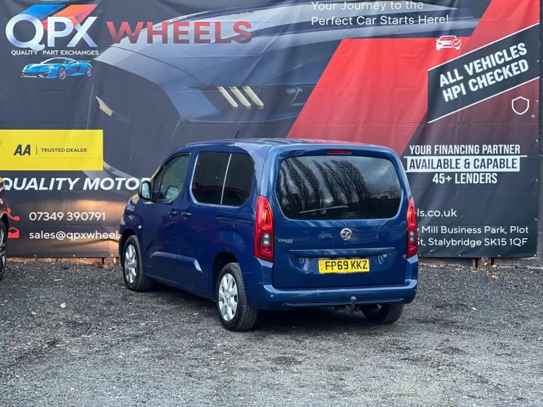 Here at QPX Wheels, we are pleased to offer this 2019 Vauxhall Combo Life 1.5 Turbo D Energy Automatic, a spacious and practical family vehicle with 107,000 miles, 2 owners, and ULEZ compliance.2 OwnersHPI ClearMOT 19/02/2027 & Full Dealer service History2 Remote KeysULEZ Compliant1.5 Turbo D Diesel EngineAutomatic TransmissionAir ConditioningTouchscreen Infotainment SystemCarPlay / Android AutoBluetooth ConnectivityDAB Digital RadioUSB ConnectivityCruise Control with Speed LimiterMultifunction Steering WheelFront & Rear Parking SensorsElectric Front & Rear WindowsElectrically Adjustable & Heated Door MirrorsTwin Sliding Rear DoorsISOFIX Child Seat Mounting PointsRemote Central LockingStart/Stop TechnologyTrip ComputerDue to high demand, early booking of viewings is recommended. Arrange yours via our website [Website URL removed] or by calling +44 (0)7349390791Our friendly team will look after you before, during and after the sales. We will help you with taxing the vehicle, completing official forms, and we will make sure that you, your family and loved ones are safe on the road. We also offer a wide range of warranties and finance to meet your needs. WHO WE AREWe are a car dealership with 16 years of experience, based in Clarence Street, Stalybridge, SK15 1QF. We are 100% sure that we can find you the right vehicle as we offer over 150 cars for sale at any time. OUR QUALITY PROMISE- Every car comes with our FREE 3 Months warranty- We offer a fresh MOT for all vehicles due for one within the next 3 months. - All our vehicles are HPI Clear and undergo a 39-Point check, conducted by professional inspectors. - Every vehicle is valeted and sanitised to a high standard. - We are able to offer delivery nationwide at competitive prices, don't hesitate to contact us for a quote.FINANCE, PART EXCHANGE OR A STRAIGHT PURCHASE IS AVAILABLE. QPX Wheels Team.[Website URL removed]