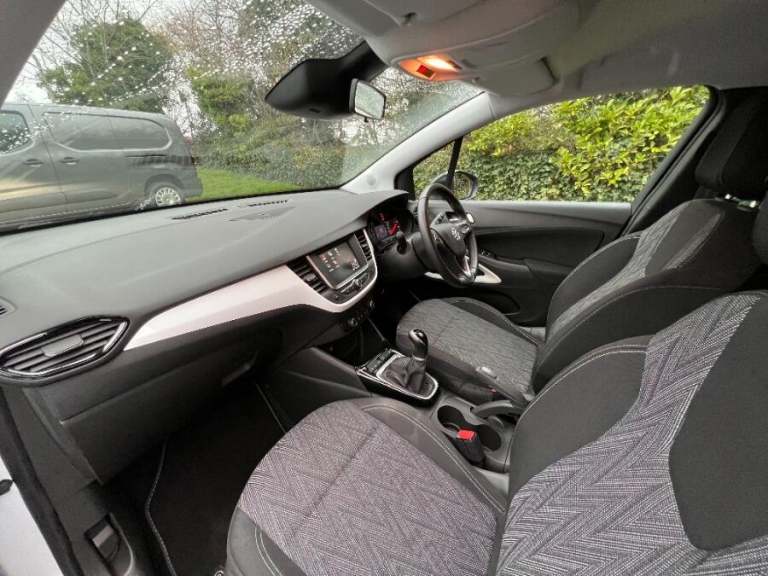 This Vauxhall Crossland X available from Wilson and Co Bolton is finished in White and powered by a 1.2-litre petrol engine with a 5-speed manual gearbox. The car comes with air conditioning, a touch screen infotainment system, and key safety features including Isofix, hill assist, emergency brake assistance, and curtain airbags.Inside, it offers comfort front seats, adjustable steering, split-folding 60-40 rear seats, and a fully carpeted luggage area. Additional practical features include front and rear floor mats, multiple storage compartments, and two front cup holders. Exterior highlights include LED daytime running lights and alloy wheels, while the interior benefits from chrome-effect door handles, black door panel inserts, and a leather-covered steering wheel with mounted controls.
