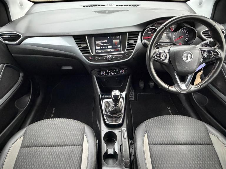 The Vauxhall Crossland X 1.2T [130] Elite is a premium-trim compact SUV designed for families who value practicality, a higher driving position, and generous standard equipment. The ""[130]"" indicates the most powerful petrol engine in the range, offering a punchier driving experience compared to the standard 81hp or 110hp models. Performance & Efficiency Engine: 1.2-litre 3-cylinder Turbocharged Petrol .Power: 130hp (96kW) with 230Nm of torque. Transmission: Typically paired with a 6-speed manual or 6-speed automatic gearbox. Start/Stop Technology: Automatically shuts off the engine when stationary to improve fuel economy and reduce emissions. Acceleration: 0 62 mph in approximately 9.1 to 9.9 seconds. Fuel Economy: Capable of delivering between 44 and 55 mpg (WLTP combined), making it efficient for its class. Key Elite Trim Features The ""Elite"" trim is one of the higher specifications, focusing on comfort and styling: Exterior Styling: 17-inch multi-spoke diamond-cut alloy wheels, chrome-effect window trim, and often a contrast color roof (e.g., black or white roof against the body color).Interior Comfort: Dual-zone electronic climate control, ambient LED lighting, and a leather-covered steering wheel. Seating: Features ""Ergonomic Active"" front seats (AGR-approved) which provide better lumbar support for long journeys, and premium leather-effect side bolsters. Winter Pack: Many Elite models include the popular Winter Pack, featuring heated front seats and a heated steering wheel. Technology & Connectivity Infotainment: R4.0 Intelli Link system with a 7-inch or 8-inch color touch screen. Smartphone Integration: Full support for Apple Car Play and Android Auto. Navigation: ""Elite Nav"" versions include a built-in European satellite navigation system. Audio: DAB digital radio, Bluetooth audio streaming, and USB connectivity with a 6-speaker system. safety & Practicality Safety Tech: Lane Departure Warning, Speed Sign Recognition, Hill Start Assist, and Cruise Control with a speed limiter. Parking Aids: Standard rear parking sensors (some models include a rear-view camera).Boot Space: A generous 410-litre boot, which expands to 1,255 litres with the rear seats folded. Flexibility: Includes 60/40 split-folding rear seats. Some models feature the Flex Floor adjustable luggage compartment floor.