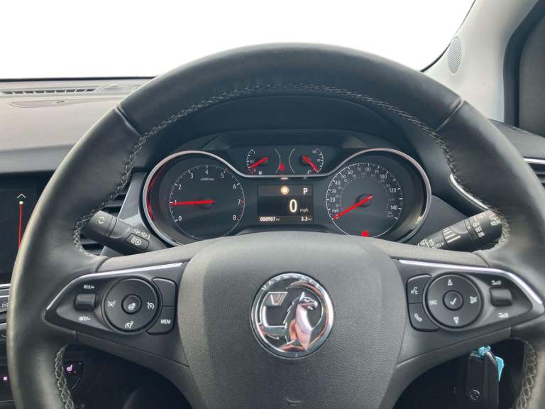 ..3.5'' monochrome instrument colour display, Audible lights on warning, Bluetooth connectivity, Cruise control + speed limiter, Digital clock with automatic RDS time adjustment, Instrumentation - Speedometer, rev counter, low fuel gauge warning light + water temperature gauge warning light, shift up/down indicate light, Lane departure warning system, Multi function trip computer, Multimedia sat nav pro with 8'' colour touchscreen, AM/FM, Bluetooth streaming, Bluetooth mobile phone portal, apple CarPlay/Android Auto + 6 speakers, Outside temperature display with ice warning, Refridgerant low indicator, Service interval indicator, Speed sensitive power steering, Speed sign recognition, Vauxhall connect, Wireless charger, Front wheel drive, 2 x USB connections, DAB Digital radio, Steering wheel mounted audio/phone/cruise controls, 2 speed wipers/wash wipe/intermittent wipe, Alloy effect front and rear skid plates, Automatic anti dazzle rear view mirror, Automatic headlamp levelling system, Automatic high beam control with cornering light, Automatic lighting control, Black radiator grille with chrome bar, Body colour door handles, Body colour front and rear bumpers, Chrome effect upper window moulding, Dark tinted rear side windows + tailgate window, Electrically adjustable and heated door mirrors, Front power windows with express up/down and anti-pinch function, Hazard warning lights, Headlamps for left side traffic, Heated rear window, Integrated tailgate spoiler, Intermittent rear wash/wipe, LED daytime running lights, LED front fog lights, LED Headlights, LED side repeat indicators, LED tail lights, Rain sensitive windscreen wipers, Rear fog lights, Rear power windows with express up/down and anti-pinch function, Reversing light, Side window demist vents, Solar heat absorbing windscreen and windows, Welcome lighting, Windscreen demist vents, 12v power outlet - front, 2 way adjustable front passenger seat, 2 way front passive headrests, 3 spoke flat bottomed leather covered steering wheel with bezel decoration, 4 way electrically adjustable lumbar support for drivers seat, 60/40 split folding rear seat backrest, Adjustable rear seat backrest, Air recirculation facility, Ambient lighting, Anti submarining ramps in front seats, Cabin particulate filter - removes dust, airborne particles and pollen, Centre console, Driver and front passenger illuminated vanity mirrors with flip up covers, Driver's seat armrest, Drivers ergonomic active seat with 8 way manual