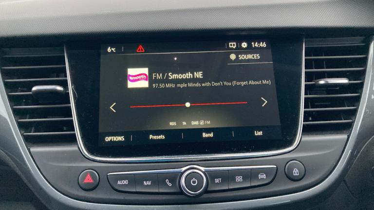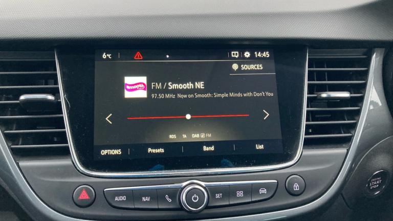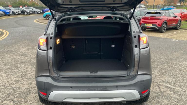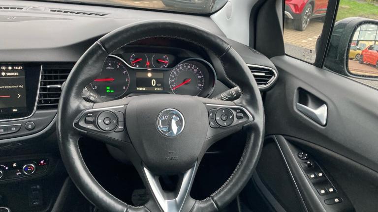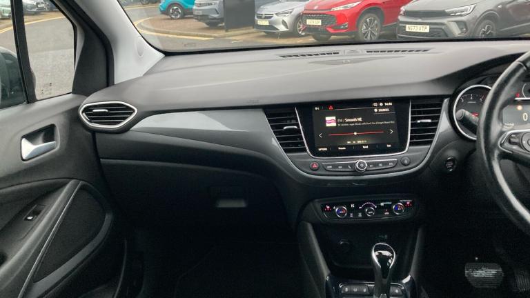.Fully carpeted luggage area, Intermittent rear wash/wipe, ABS, Front wheel drive, Bluetooth connectivity, Speed sensitive power steering, Keyless entry and start, Service interval indicator, Electrically adjustable and heated door mirrors, Cluster black with chrome rings, DAB Digital radio, Body colour door handles, Automatic lighting control, Dual zone electronic climate control, Reach + rake adjustable steering column, Rear reading lights, Rear view camera plus pack - Crossland, Reinforced passenger safety cell, Height adjustable front/rear head restraints, Engine immobiliser, Driver and front passenger illuminated vanity mirrors with flip up covers, 17"" five twin spoke diamond bi colour alloy wheels