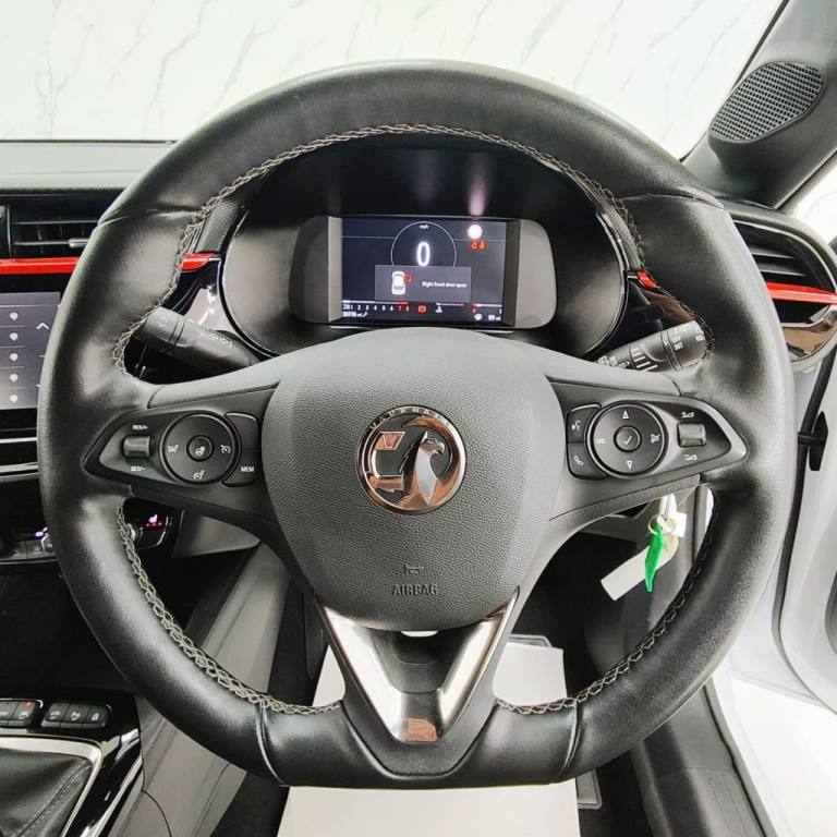 This 2022 Vauxhall Corsa Turbo SRi Edition is a fantastic example, having had only one owner and boasting a clear vehicle history check. This Euro 6 compliant 1.2 litre petrol model comes with 12 months MOT provided on purchase, ensuring peace of mind. Inside, youll find a comfortable and modern cabin featuring heated front seats and a heated steering wheel, perfect for colder days. The SRi Edition also includes an impressive multimedia infotainment system with Android Auto and Apple CarPlay connectivity, plus Bluetooth for seamless phone integration. Driving is made easier and safer with LED headlights that feature High Beam Assist, and you can maintain your ideal cabin temperature with the Electronic Climate Control. Experience the efficiency and performance of this Corsa, which achieves an impressive 52 miles per gallon, making it an economical choice for your daily journeys. Its low CO2 emissions further contribute to its environmental credentials. For those who appreciate a responsive drive, this model accelerates from 0 to 60 miles per hour in just 9.3 seconds. These highlights, including its excellent fuel economy, low emissions, and brisk acceleration, demonstrate how this Vauxhall Corsa Turbo SRi Edition offers a superior driving experience compared to many other vehicles in its class. Part Exchange Welcome. All Majors Cards Accepted. We Have Finance Available. A Wide Range of Warranties. We Also Offer Low Cost, Nationwide Delivery Available From £1.50 a Mile. **Every endeavour is made to ensure specifications and descriptions are correct. Due to model changes specification may vary. Phone for details. MPG figures shown are government official figures.**.Banda Fabric with Mistral Fabric Side Bolsters - Marvel Black with Signal Red and Dark Titanium Stitching, Jade White, Body Coloured Roof and A-Pillars, 12V Electrical Accessory Socket, 17in Alloy Wheels - Diamond-Cut - Bi-Colour, 7in Digital Instrument Cluster, ABS - Anti-Lock Braking System, Airbag - Drivers, Airbags - Front Passenger, Airbags - Front Seat Side-Impact, Airbags - Full Size Curtain, Alloy Sport Pedals, Automatic Anti-Dazzle Rear-View Mirror, Automatic Emergency City Braking, Automatic Lighting Control, Black Headliner, Black Lower Side Window Mouldings, Black Roof and A-Pillars, Body Coloured Front and Rear Bumpers, Bonnet - Headlight - Wiper Structure, Cabin Particulate Filter, Central Facia Display, Centre Rear Brake Light, Child Proof Locks on Rear Doors, Chrome Effect Exhaust Tailpipe Extension, Chrome Logo Bar, Cruise Control with Speed Limiter, Dark Tinted Rear Side and Tailgate Windows, Deactivation Switch for Front Passengers Airbag, Door Handles - Body Coloured, Door Handles - Interior - Chrome Effect, Door Mirrors - Electrically Adjustable-Heated, Driver Drowsiness System, Driver Information Display, Drivers Seat 6-Way Adjustable, Drivers and Front Passengers Sunvisor Incorporating Vanity Mirrors with Covers, EBD - Electronic Brakeforce Distribution, EPB - Electric Parking Brake, ESP - Electronic Stability Programme, Electrically Operated Front and Rear Windows with Safety Autoreverse and One-Touch Facility, Electronic Climate Control, Electronic Engine Deadlock Immobiliser, Emergency Brake Assist, Forward Collision Alert, Four Adjustable Facia Vents, Four-Speed Fan with Illuminated Controls, Front Camera System, Front Centre Armrest with Storage, Front Passengers Seat - Four-Way Adjustable, Fuel Gauge with Low Fuel Level Warning Light, Glazed Tailgate with Heated Window and Wash-Wipe Facility, Hazard Warning Lights, Head Restraints - Height Adjustable, Headlight Levelling System, High Gloss Black B-Pillars, Hill Start Assist, ISOFIX Child Seat Mountings Incorporating Top Tether Anchor Points Located on Outer Rear Seats, Illuminated Glovebox with Lid, Inertia-Reel Lap and Diagonal Seatbelts, Interior Courtesy Lights and Front Map Reading Light, LED Daytime Running Lights, LED Front Fog Lights, LED Headlights with High Beam Assist, LED Tail Lights, Lane Departure Warning with Lane Assist, Lights On Audible Warning, Liquid Palladium Cloth Inserts, Liquid Palladium Facia with Hot Red Accent, Lockable Fuel Filler Cap, Luggage Compart