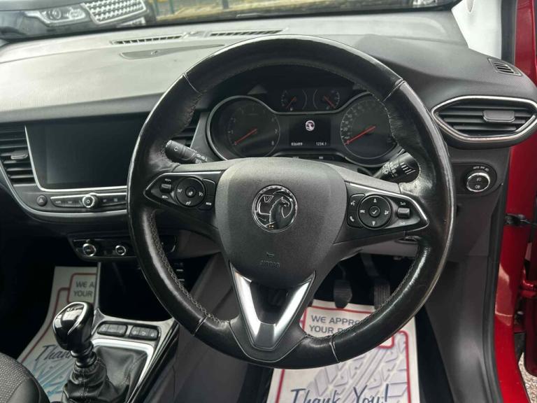 **ULEZ COMPLIANT** ++2022 REG OF TRZ 5987++ Private plate comes with the car, 2 Keys, 2 Owners from new, HPI clear, Finished in Red with Black cloth seats, Electric windows/mirrors, CD player, DAB radio, AUX ports, USB port, SAT NAV, Bluetooth phone prep, Air con, Air bags, Alloys, Alarm, ABS, Parking sensors, PAS, Tinted glass, LED lights, Great MPG return, Lovely little car this will come with a new MOT+SERVICE upon purchase with us here at CTC at screen price. Please don't miss out on this lovely low milage VAUXHALL CROSSLAND 1.2 TURBO ELITE EDITION MINI SUV SPEC, 5 DOOR, 6 SPEED MANAUL. SERVICE HISTORY AS FOLLOWS: 12,377 at Vauxhall, 25,124 at Vauxhall, 33,563 at Vauxhall, 36,550 here with us at CTC upon purchase at screen price. IF YOU WOULD LIKE ANYMORE INFO ON THIS CAR THEN PLEASE CALL US ON 01633 741708. ALSO CLAIM YOUR FREE 12 MONTHS AA BREAKDOWN COVER.. 12V Electrical Accessory Socket - Front,17in Alloy Wheels - Five Twin-Spoke - Bi-Colour - Diamond Cut,ABS - Anti-Lock Braking System,Air Recirculation System,Airbag - Drivers,Airbags - Front Passenger,Airbags - Front Seat Side-Impact,Airbags - Full Size Curtain,Alloy-Effect Skid Plates,Ambient Lighting,Anti-Submarining Ramps in Front Seats,Automatic Headlight Levelling System,Automatic High Beam Control with Cornering Light,Automatic Lighting Control,Automatically Dimming Anti-Dazzle Rear-View Mirror,Black Facia with Silver Trim Inserts,Black Trim Inserts on Front Doors,Body Coloured Door Handles,Bumpers - Body Colour Front and Rear,CSC - Corner Stability Control,Cabin Particulate Filter,Central Facia Display,Central Front Courtesy Light,Central Rear Courtesy Light,Child Proof Locks on Rear Doors,Chrome Effect Upper Window Mouldings,Climate Control - Electronic Dual Zone,Collapsible Windscreen Wiper System,Cruise Control with Speed Limiter,Dark Tinted Rear Side and Tailgate Windows,Deactivation Switch For Front Passengers Front and Side Impact Airbags,Deformation Zones Front and Rear,Door Mirrors - Black,Driver Drowsiness System - Forward Collision Alert - Automatic Emergency Braking with Pedestrian Detection,Driver Information Display,Drivers Seat Armrest,Drivers and Front Passengers Illuminated Vanity Mirrors with Flip-Up Cover,Dual Seatbelt Pretensioners on Front Seats,EBD - Electronic Brakeforce Distribution,ESP - Electronic Stability Programme,Electrically Operated Front and Rear Windows with Safety Autoreverse and One-Touch Up-Down Facility,Electronically Protected Audio Equipment,Energy Absorbing Steering Column,Engine Deadlock Immobiliser,Engine Drag Torque Control,Ergonomic Active Drivers Seat - AGR-Approved,Four Adjustable Facia Vents,Front Door Pockets with 1.5-Litre Bottle Holder,Front Passenger Seat - Two-Way Adjustable,Front USB Connection,Front and Rear Parking Distance Sensors,Fuel Gauge with Low Fuel Warning Light,Fully Carpeted Luggage Area,Glovebox with Lid,Hazard Warning Lights,Heated Rear Window,Height-Adjustable Front Seat Head Restraints,Height-Adjustable Head Restraints on Outer Rear Seats,Hill Start Assist,Hydraulic Brake Assist,Hydraulic Brake Boost,ISOFIX Child Seat Mountings Incorporating Top Tether Anchor Points Located on Outer Rear Seats,Illuminated Controls,Illuminated Luggage Area,Inertia-Reel Lap and Diagonal Seatbelts,Integrated Tailgate Spoiler,Interior Lighting - Fade Up-Fade Down,Intermittent Rear Window Wash-Wipe,LED Daytime Running Lights,LED Front Fog Lights,LED Headlights,LED Side Repeat Indicators,Lane Departure Warning,Lights On Audible Warning,Load Limiters on Front and Outer Rear Seatbelt Retractors,Locking Wheel Bolts for Alloy Wheels,Luggage Area Cover,Luggage Compartment Foldable Cover,Multi-Function Trip Computer,Multi-Speed Fan,Multimedia Infotainment System with 7in Touchscreen,Open Storage Compartment in Centre Console,Panoramic Rear View Camera,Pretensioners on Outer Rear Seatbelt Retractors,Rain Sensitive Windscreen Wipers,Rear Door Pockets with 0.5-Litre Bottle Holder,Rear Fog Lights,Reinforced Passenger Safety Cell,Remote Control Central Locking,Remote Control Security Alarm System,Reversing Lights,Roof - Black,Seats - Rear Split Folding 60-40,Shift Up Indication Light,Side Impact Protection Beams,Side Window Demist Vents,Smart Seatbelt Reminder for Front and Rear Seats,Solar Heat Absorbing Windows,Solar Heat Absorbing Windscreen,Speed Sensitive Power Assisted Steering,Speed Sign Recognition,Speedometer and Rev Counter,Steering Column - Adjustable for Reach and Rake,Steering Wheel - Three-Spoke Design - Heated - Leather Covered - Satin Chrome-Effect Bezel,Steering Wheel Mounted Audio Controls - Phone - Cruise Control,Storage Pocket on Front Seat Backs,TPMS - Tyre Pressure Monitoring System,Tinted Windows,Traction Control,Twin Electrically Adjustable - Heated Door Mirrors,Two Drinks Holders in Centre Console,Upper and Lower Bumper Design,VIN - Visible Vehicle Identification Number,Vauxhall Connect,Water Temperature Gauge with Warning Light,Windscreen Demist Vents,Winter Pack
