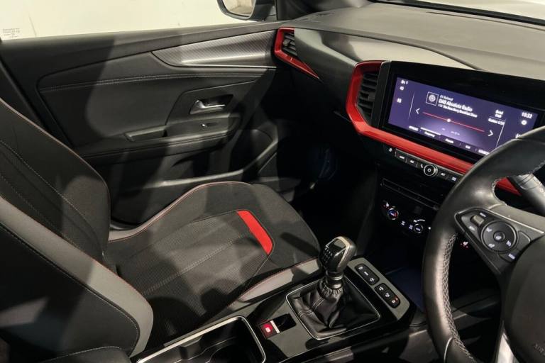 This 2023 Vauxhall Mokka Turbo GS is a superb example, having had only one owner from new and boasting a clear vehicle history check. This stylish SUV features a responsive 1.2 litre petrol engine, meeting Euro 6 emissions standards, and comes in the well appointed GS trim. Inside, youll find comfort and convenience with heated front seats and a heated steering wheel, perfect for those colder mornings. Navigating and staying connected is effortless thanks to the 10 inch Multimedia Navi Pro system, complete with live navigation, Android Auto, and Apple CarPlay. Parking is made simpler with both front and rear parking distance sensors, supported by a front camera system. Experience impressive performance with a 0 to 60 mph time of just 9.1 seconds, all while achieving an excellent fuel economy of 51 mpg. The Mokka Turbo GS also benefits from low CO2 emissions, indicating its efficiency and environmental consideration compared to other vehicles in its class. This combination of engaging driving dynamics, economical running costs, and advanced technology makes this Vauxhall Mokka a truly compelling choice. Lifetime warranty available on this car, plus a £1,000 finance contribution when you part exchange. Voted UK Car Supermarket of the Year two years running, we offer 0% finance, part exchange, and lifetime warranties across our entire range. Every car is thoroughly inspected before sale and comes with a full history check, so you can buy with complete peace of mind. Buy with confidence on our best finance rates. Proud winners of the CarGurus Top-Rated Dealer 2022 and the MotoNovo Extra Mile Award. .10in Multimedia Navi Pro with Live Navigation, 12in Digital Instrument Cluster, 12V Electrical Accessory Socket - Front, 18in Alloy Wheels - Bi-Colour with Red Accents, 2 Rear USB Connections, ABS - Anti-Lock Braking System, Airbag - Driver, Airbags - Deactivation Switch For Front Passengers and Side Impact, Airbags - Front Passenger, Airbags - Front Seat Side-Impact, Airbags - Full Size Curtain, Alloy Sport Pedals, Armrest - Front Centre with Storage, Atlantis Black Trim Inserts on Front Doors, Automatic Lighting Control with Tunnel Detection, Automatically Dimming Anti-Dazzle Rear-View Mirror, Black Door Mirrors, Black Facia with Red Trim Inserts, Black Front-Rear Bumper Inserts, Black Griffin Logo and Vizor Frame, Black Headliner, Bumpers - Body Colour Front and Rear, Carbon Black, CBC - Cornering Brake Control, Child Proof Locks on Rear Doors, Chrome Effect Interior Door Handles, Cruise Control with Speed Limiter, Digital Central Facia Display, Digital Fuel Gauge with Low Fuel Level Warning Light, Digital Speedometer and Rev Counter, Digital Water Temperature Gauge with Warning Light, Door Handles - Body Coloured, Door Mirrors - Electrically Adjustable and Heated, Driver Drowsiness Alert, Driver Information Display, Drivers and Front Passengers Seat - Six-Way Adjustable, EBD - Electronic Brakeforce Distribution, Electric Windows - Front, Electronic Climate Control, Emergency Brake Assist, Emergency Tyre Inflation Kit, Enhanced Automatic Emergency Braking with Pedestrian Detection, Fabric-Leather Effect - Jet Black-Red, Flat Bottom Steering Wheel - 3 Spoke - Leather, Forward Collision Alert, Front Camera System, Front Map Reading Lights, Front USB Connection, Heated Front Seats, High Beam Assist, Hill Start Assist, Instrument Panel Bar - Light Gravel, Integrated Black Tailgate Spoiler, Interior Courtesy Lights, ISOFIX Child Seat Mountings Incorporating Top Tether Anchor Points Located on Outer Rear Seats, Lane Keep Assist with Lane Departure Warning, LED Daytime Running Lights, LED Headlights, LED Tail Lights, Luggage Compartment Lighting, Multi-Function Trip Computer, Panoramic Rear View Camera, Rain Sensitive Windscreen Wipers, Rake and Reach Adjustable Steering, Rear Parking Distance Sensors, Red Upper Window Mouldings, Remote Control Central Locking, Remote Control Ultrasonic Security Alarm System, Roof - Black, Satellite Navigation Display, Shift - Up-Down Indication Light, Single Pinion Electrical Power Steering, Sports Switch with Engine Sound En