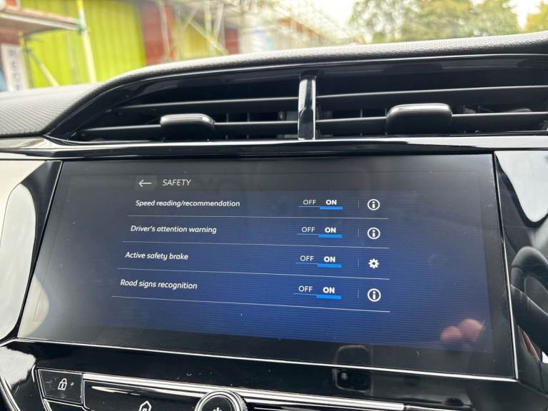 ..3.5'' colour driver instrument cluster (DIC), Apple car play/Android Auto, Bluetooth connectivity, Central facia display with digital clock, outside air temperature and audio information, Cruise control with intelligent speed limiter, Driver drowsiness alert system, E-call, Engine oil life indicator, Front camera system, Infotainment remote controls right side of steering wheel, telephone buttons on left side, Instrumentation - Speedometer, rev counter, low fuel gauge warning light + water temperature gauge warning light, shift up/down indicate light, Lane departure warning with lane assist, Lights on audible warning, Multi function trip computer - Trip odometer, vehicle range, average speed and fuel economy, instantaneous fuel economy and driving time, RDS with traffic programme, Rear parking distance sensors, Service indicator, Speed sensitive power steering, Speed sign recognition, Sport drive mode selector, Start/stop system, Tailgate, Electronic returnless fuel system, Petrol Particulate Filter, Under body shield for aero, AM/FM stereo radio, Bluetooth A2DP audio streaming, DAB Digital radio, Multimedia with 10-inch touchscreen, Six speakers, Steering wheel audio, phone and cruise controls, USB type C port, 3rd brake light, Automatic headlight control system, Black door mirror housings, Black lower side window mouldings, Body colour door handles, Body colour front and rear bumpers, Body colour roof and A pillar, Bonnet/headlight/wiper structure, Chrome-effect Griffin logo and Black vizor frame, Corsa lettering in tailgate, Electrically operated front and rear windows with safety auto reverse and one touch up/down facility, Electrochromic automatic anti-dazzle rear view mirror, Flexible roof mounted aerial, Glazed tailgate and heated rear window with wash/wipe facility, Hazard warning lights, Headlamps for left side traffic, High beam assist, LED daytime running lights, LED Headlights, Manual headlamp level control, Rain sensitive windscreen wipers, Rear fog lamp, Rear reversing lights, Rear side wing doors, Rear wiper, Solar heat absorbing windscreen and windows, Two speed windscreen wipers with variable intermittent wipe, Windscreen and side window demist vents, 12V power sockets, 3 bench rear seats in 2nd row, 3 spoke flat bottomed leather effect steering wheel with satin chrome effect bezel, 4 speed fan with illuminated controls, 4 way manual co-driver seat reach fore/aft, backrest upright/recline, 6 way manual adjustable driver seat height