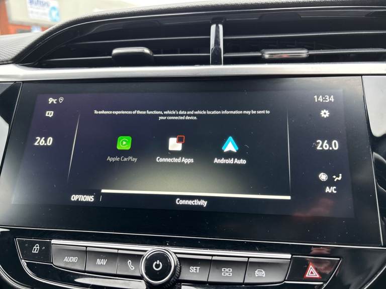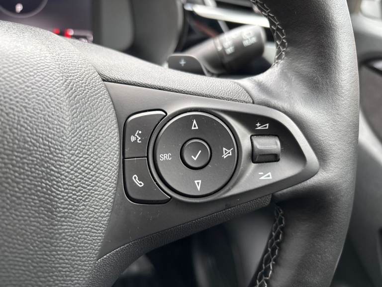 ..7 inch digital instrument cluster display, Adaptive cruise control with speed limiter, Apple car play/Android Auto, Auto tele unit 3S vehicle communication system, Blind spot alert, Bluetooth mobile phone portal, Central facia display with digital clock, outside air temperature and audio information, Driver drowsiness alert system, eCall emergency call system, Engine oil life indicator, Front and rear parking sensors, Front camera system, Infotainment remote controls right side of steering wheel, telephone buttons on left side, Instrumentation - Speedometer, rev counter, low fuel gauge warning light + water temperature gauge warning light, Lane departure warning with lane assist, Lane positioning assist, Lights on audible warning, Multi function trip computer - Trip odometer, vehicle range, average speed and fuel economy, instantaneous fuel economy and driving time, Multimedia Navi pro 10'' colour touchscreen, Sat nav, European coverage,2D/3D street level mapping, points-of-interest search and map updates via USB, Panoramic rear view camera, RDS with traffic programme, Service indicator, Speed sensitive power steering, Speed sign recognition, Sports switch, Start/stop system, Three driving modes (Normal, Sport, Eco), Traffic sign recognition with intelligent speed adaptation, Vauxhall connect box, Wireless charger, Electronic returnless fuel system, Petrol Particulate Filter, Under body shield for aero, AM/FM stereo radio, Bluetooth A2DP audio streaming, DAB Digital radio, Rear USB port, Six speakers, Steering wheel audio, phone and cruise controls, USB with iPod control, Automatic headlamp levelling, Automatic headlight control system, Black door mirror housings, Body colour door handles, Body colour front and rear bumpers, Bonnet/headlight/wiper structure, Centre rear brake lights, Chrome effect lower side window mouldings, Chrome effect tailpipe extension, Chrome logo bar, Dark tinted rear side windows + tailgate window, Electrically adjustable and heated door mirrors, Electrically folding door mirrors, Electrically operated front and rear windows with safety auto reverse and one touch up/down facility, Electrochromic automatic anti-dazzle rear view mirror, Flexible roof mounted aerial, Glazed tailgate and heated rear window with wash/wipe facility, Hazard warning lights, Headlamps for left side traffic, High beam assist, High gloss black finish B pillar, Intelli-Lux Matrix LED Headlights, LED daytime running lights, LED front fog lamps, LED tail