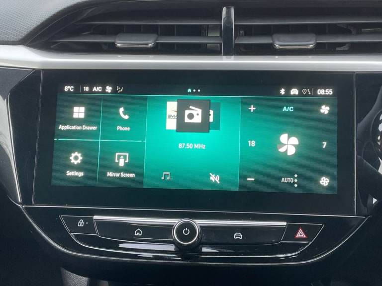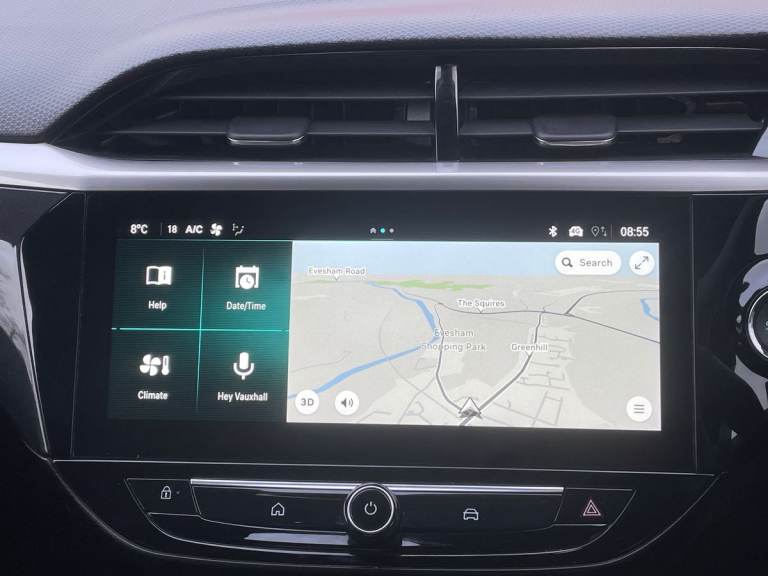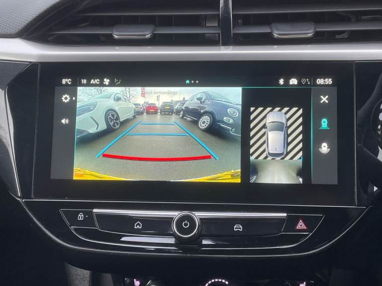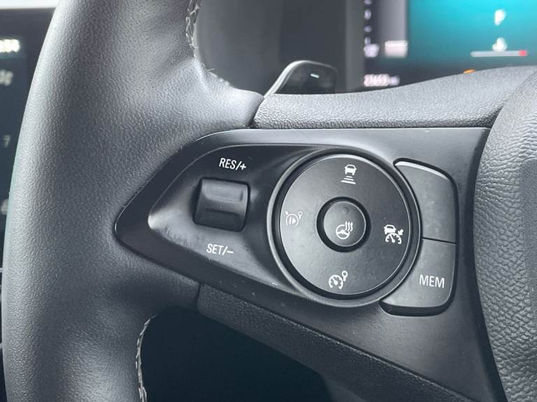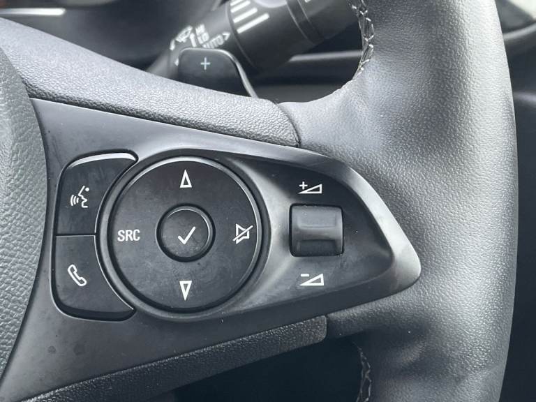 ..180 degree panoramic rear view camera, 7 inch digital instrument cluster display, Adaptive cruise control with speed limiter, Auto tele unit 3S vehicle communication system, Bluetooth connectivity, Central facia display with digital clock, outside air temperature and audio information, Driver drowsiness alert system, E-call, Engine oil life indicator, Enhanced traffic sign recognition, Front and rear parking sensors, Front camera system, Infotainment remote controls right side of steering wheel, telephone buttons on left side, Instrumentation - Speedometer, rev counter, low fuel gauge warning light + water temperature gauge warning light, Lane departure warning with lane assist, Lane positioning assist, Lights on audible warning, Multi function trip computer - Trip odometer, vehicle range, average speed and fuel economy, instantaneous fuel economy and driving time, Natural voice control, RDS with traffic programme, Satellite navigation system, Service indicator, Side blind spot alert, Speed sensitive power steering, Speed sign recognition, Sports switch, Start/stop system, Three driving modes (Normal, Sport, Eco), Vauxhall connect box, Voice recognition, Wireless Apple CarPlay/Android Auto, Wireless charger, Electronic returnless fuel system, Petrol Particulate Filter, Under body shield for aero, AM/FM stereo radio, Bluetooth A2DP audio streaming function (Advanced audio distribuition profile), DAB Digital radio, Multimedia Navi with 10-inch touchscreen, Rear USB port, Six speakers, Steering wheel audio, phone and cruise controls, USB type C port, 3rd brake light, Automatic headlamp levelling, Automatic headlight control system, Black DLO, Black door mirror housings, Black Griffin logo and vizor frame, Black lower side window mouldings, Body colour door handles, Body colour front and rear bumpers, Bonnet/headlight/wiper structure, Chrome effect tailpipe extension, Corsa lettering in tailgate, Dark tinted rear side windows + tailgate window, Electrically adjustable and heated door mirrors, Electrically folding door mirrors, Electrically operated front and rear windows with safety auto reverse and one touch up/down facility, Electrochromic automatic anti-dazzle rear view mirror, Glazed tailgate and heated rear window with wash/wipe facility, Hazard warning lights, Headlamps for left side traffic, High beam assist, High gloss black finish B pillar, Intelli-Lux Matrix LED Headlights, LED daytime running lights, LED fog lights, LED tail lamp, Rain sensitive
