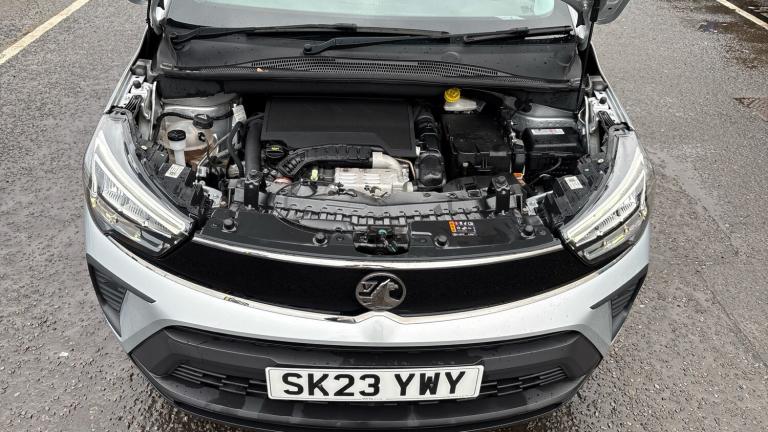 Discover modern comfort and easy driving with this 2023 Vauxhall Crossland Hatchback 1.2 Turbo [130] Design Auto, finished in Crystal Silver and showing under 15,000 miles. This exceptionally low-mileage example combines the convenience of an automatic gearbox with a high level of specification, making it a superb choice for everyday motoring and longer journeys alike.Powered by a refined 1.2-litre Turbo petrol engine producing 130 PS, the Crossland delivers smooth, responsive performance with relaxed acceleration and impressive efficiency. The automatic transmission ensures effortless gear changes, ideal for urban stop-start traffic or relaxed cruising on country roads, taking the strain out of driving and enhancing comfort for all occupants.The Design trim offers a well-balanced specification that includes a modern infotainment system with touchscreen display, intuitive menus and seamless smartphone integration via Apple CarPlay and Android Auto. Crystal Silver paintwork adds a sleek, contemporary look, and the spacious interior ensures plenty of room for passengers and luggage.Inside, you'll find supportive seating, dual-zone climate control, cruise control, rear parking sensors and a reversing camera - all designed to make every journey more comfortable and convenient. Safety features such as lane keep assist, traffic sign recognition and autonomous emergency braking give added peace of mind.With its very low mileage, smooth automatic transmission and strong specification, this 2023 Vauxhall Crossland Design Auto is a refined and practical hatchback SUV that's ideal for daily commuting, family life or weekend adventures.A personalised video is available on request..Metallic Paint, Bluetooth, Parking Sensors, Low Mileage, CD Player, USB, Diamond Cut Alloy Wheels& Auto Lights, Fully carpeted luggage area, Heated rear window, Side window demist vents, Intermittent rear wash/wipe, 2 speed wipers/wash wipe/intermittent wipe, Tinted windows, Rain sensitive windscreen wipers, Windscreen demist vents, Solar heat absorbing windscreen and windows, Collapsible windscreen wipers, Electrically operated front and rear windows with safety auto reverse and one touch up/down facility, ABS, ESP + traction control, Hill start assist, Hydraulic Brake Assist (HBA), CSC - Cornering stability control, Engine drag torque control, EBD - Electronic brakeforce distribution, Hydraulic brake boost, Front wheel drive, E-call, Vehicle microphone, Speed sensitive power steering, Cruise control + speed limiter, Speed sign recognition, Front camera system, Smartphone projection, Lane departure warning with lane keep assist, Start/stop system