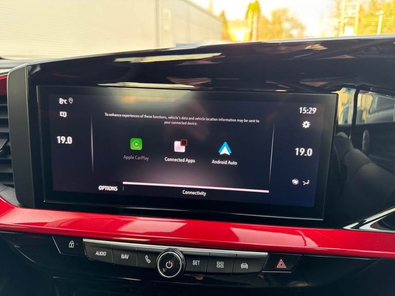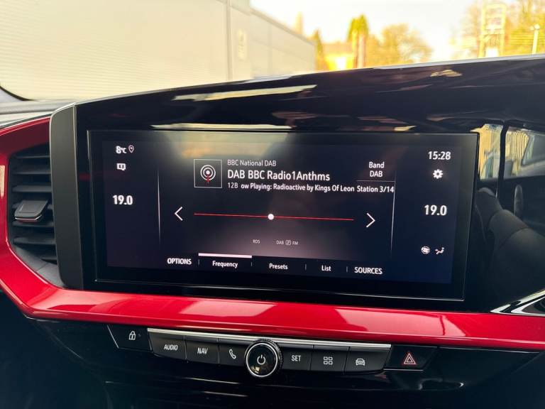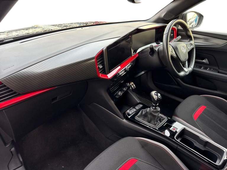 ..12'' digital instrument cluster, Cruise control with intelligent speed limiter, Digital instrumentation with digital speedometer, rev counter, fuel and water temperature gauge, Driver drowsiness alert system, Driver information display with multi function trip computer, audio info, digital clock and outside air temperature with ice warning function, Emergency services call system, EV information display, Extended traffic sign recognition, Front camera and radar system, Gearshift up/down indication light, Lane keep assist system (LAS) with Lane departure warning system (LDWS), Lights on audible warning, Panoramic rear view camera, Power assisted speed sensitive steering, RDS with traffic programme, Rear parking distance sensors, Smartphone integration compatible with Apple CarPlay and Android Auto, Sports switch with engine sound enhancement, Start/stop system, Vauxhall connect with e-Call, 6 speed manual transmission, 6 speakers, AM/FM stereo radio with 36 station presets, DAB Digital radio, Flexible Roof Mounted Radio Aerial, Front USB connection, Mobile phone portal - bluetooth connect, vehicle microphone, handsfree calls, SMS read out and reply, phone book access, Multimedia Navi Pro with 10'' colour touchscreen, Steering wheel mounted controls, Two rear USB sockets, Adaptive brake lights, Automatic lighting control with tunnel detection, Automatically dimming anti dazzle rear view mirror, Black door mirror housings, Black front and rear bumper inserts, Black Griffin logo and vizor frame, Black skid plates, Body colour door handles, Body colour front and rear bumpers, Dark tinted rear side windows + tailgate window, Electrically adjustable and heated door mirrors, Electrically operated front and rear windows with safety auto reverse and one touch up/down facility, Hazard warning lights, Heated rear window+rear wash/wipe, High beam assist, Integrated black tailgate spoiler, LED 3rd brake light, LED daytime running lights, LED Headlights, LED side repeat indicators, LED tail lights, Manual headlamp level control, Rear foglight, Rear side wing doors, Reversing light, Solar heat absorbing windscreen and windows, Two speed rain-sensitive windscreen wipers with variable intermittent wipe, Windscreen and side window demist vents, 12V Accessory socket, 3 seat bench in 2nd row, 3 spoke flat bottomed leather effect steering wheel with satin chrome effect bezel, 4 speed fan with illuminated controls, 6 way manual adjustable driver fore/aft, up/down with