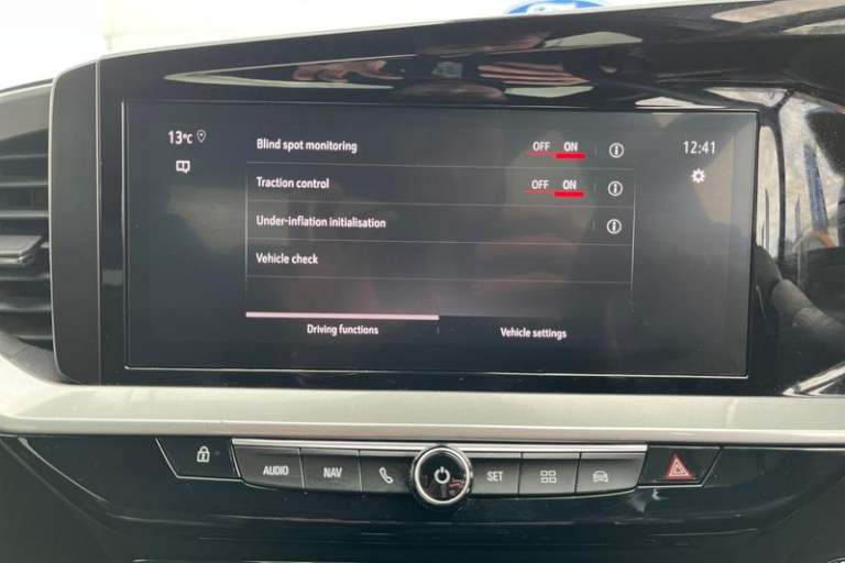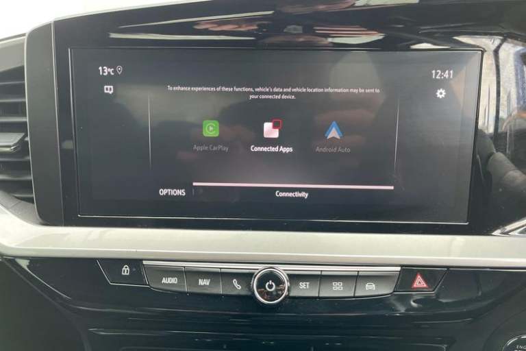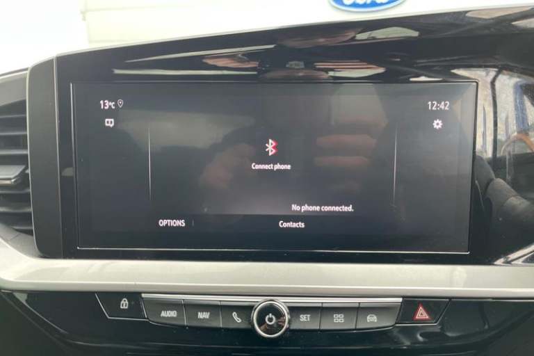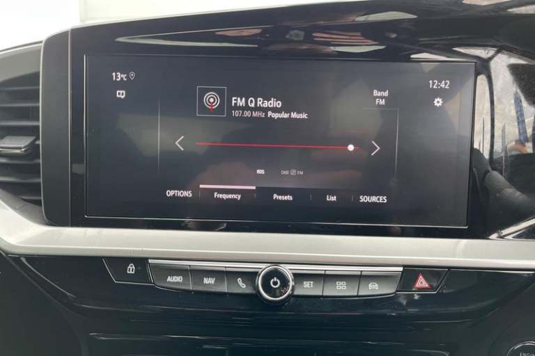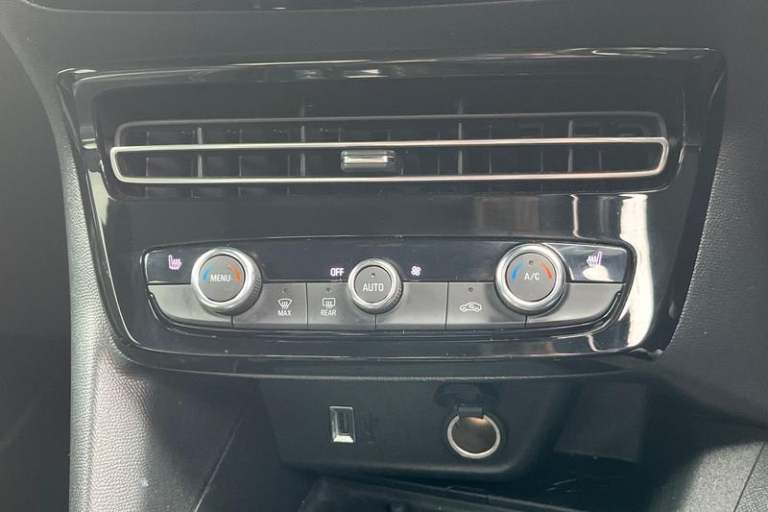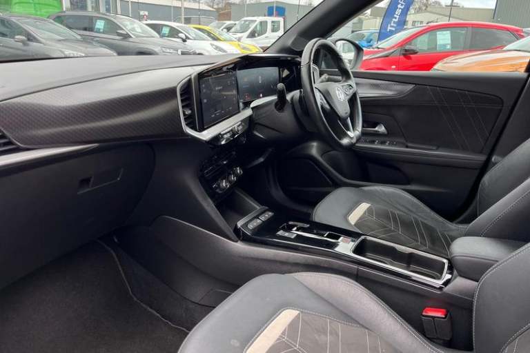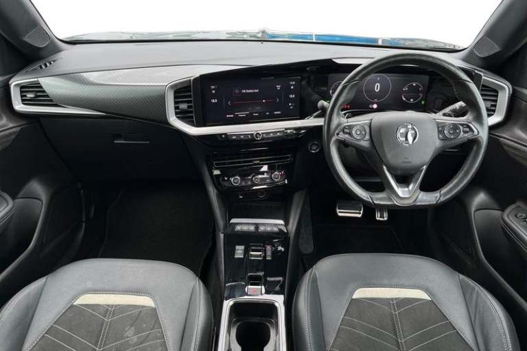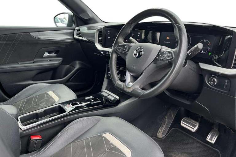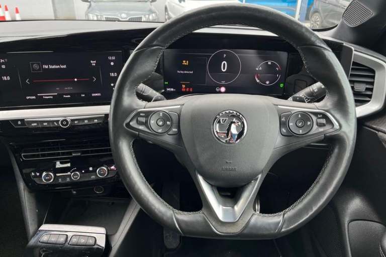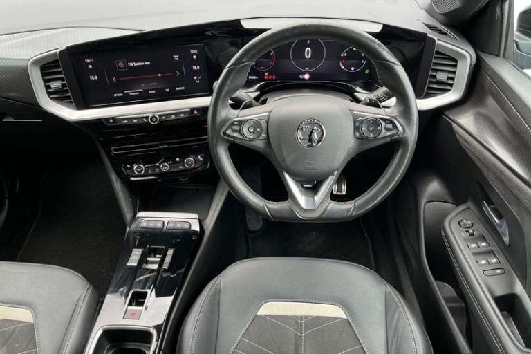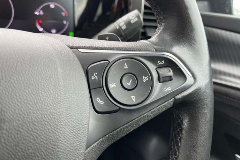 12 digital instrument cluster, Adaptive cruise control with speed limiter, Digital instrumentation with digital speedometer, rev counter, fuel and water temperature gauge, Driver drowsiness alert system, Driver information display with multi function trip computer, audio info, digital clock and outside air temperature with ice warning function, Engine start/stop button, EV information display, Extended traffic sign recognition, Front and rear parking distance sensors, Front camera and radar system, Lane keep assist system (LAS) with Lane departure warning system (LDWS), Lane positioning assist, Lights on audible warning, Panoramic rear view camera, Power assisted speed sensitive steering, RDS with traffic programme, Side blind spot alert and flank guard, Smartphone integration compatible with Apple CarPlay and Android Auto, Sports switch with engine sound enhancement, Start/stop system, Vauxhall connect with e-Call, Adaptive brake lights, Auto high beam assist, Automatic headlamp levelling, Automatic lighting control with tunnel detection, Automatically dimming anti dazzle rear view mirror, Black door mirror housings, Black front and rear bumper inserts, Black Griffin logo and vizor frame, Body colour door handles, Body colour front and rear bumpers, Dark tinted rear side windows + tailgate window, Electric adjustable/heated/folding door mirrors + puddle lights, Electrically operated front and rear windows with safety auto reverse and one touch up/down facility, Hazard warning