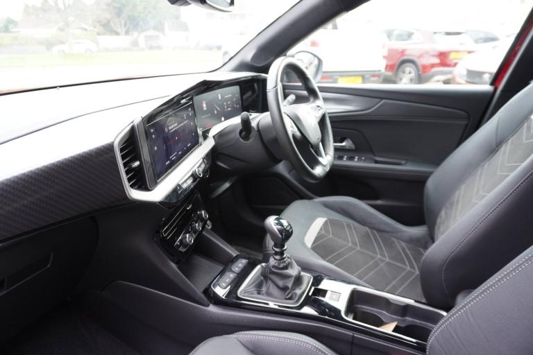 2x Isofix child seat fitting on outer rear seats, 3x3 point rear seat belts, Anti-lock braking system (ABS), Child proof locks on rear doors, Cornering brake control, Deactivation switch for front passenger front and side impact airbags, Drag torque control, Driver and front passenger airbags, front seat side impact airbags, full size curtain airbags, Electronic brake force distribution, Electronic Stability Programme (ESP), Emergency brake assist, Enhanced automatic emergency braking with pedestrian detection, Forward collision alert at all speed, Hill start assist, Inertia reel lap and diagonal seatbelts for all seats, Seatbelt unfastened audible warning and warning light, Straight line stability control, Traction control, Tyre pressure monitoring system, 12 inch digital instrument cluster, Adaptive cruise control with speed limiter, Digital instrumentation with digital speedometer, rev counter, fuel and water temperature gauge, Driver drowsiness alert system, Driver information display with multi function trip computer, audio info, digital clock and outside air temperature with ice warning function, Engine start/stop button, EV information display, Extended traffic sign recognition, Front and rear parking distance sensors, Front camera and radar system, Gearshift up/down indication light, Lane keep assist system (LAS) with Lane departure warning system (LDWS), Lights on audible warning, Panoramic rear view camera, Power assisted speed sensitive steering, RDS with traffic programme, Side blind spot alert and flank guard, Smartphone integration compatible with Apple CarPlay and Android Auto, Sports switch with engine sound enhancement, Start/stop system, Vauxhall connect with e-Call, Adaptive brake lights, Additional two coat metallic paint, Auto high beam assist, Automatic headlamp levelling, Automatic lighting control with tunnel detection, Automatically dimming anti dazzle rear view mirror, Black door mirror housings, Black front and rear bumper inserts, Black Griffin logo and vizor frame, Black roof, Body colour door handles, Body colour front and rear bumpers, Chrome effect upper window moulding, Dark tinted rear side windows + tailgate window, Electric adjustable/heated/folding door mirrors + puddle lights, Electrically operated front and rear windows with safety auto reverse and one touch up/down facility, Hazard warning lights, Heated rear window+rear wash/wipe, Integrated black tailgate spoiler, IntelliLux Matrix LED headlights with adaptive