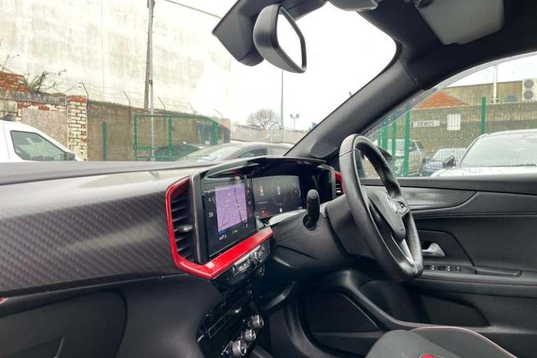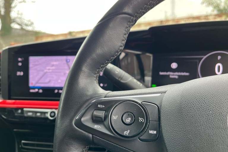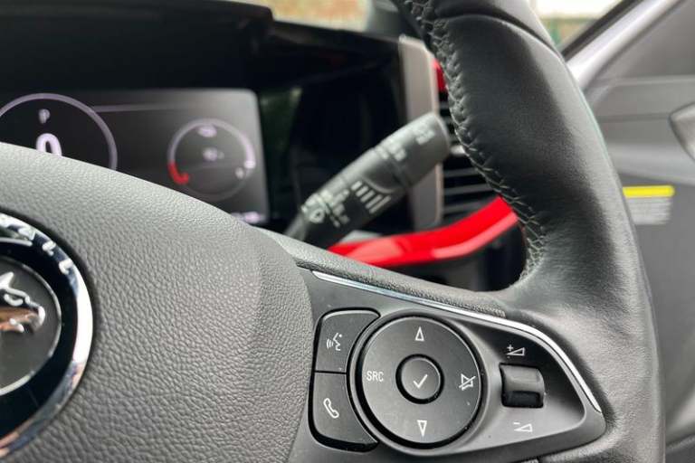 12 digital instrument cluster, Cruise control with intelligent speed limiter, Digital instrumentation with digital speedometer, rev counter, fuel and water temperature gauge, Drive mode selector, Driver drowsiness alert system, Driver information display with multi function trip computer, audio info, digital clock and outside air temperature with ice warning function, EV information display, Extended traffic sign recognition, Front camera and radar system, Lane keep assist system (LAS) with Lane departure warning system (LDWS), Lights on audible warning, Panoramic rear view camera, Power assisted speed sensitive steering, RDS with traffic programme, Rear parking distance sensors, Smartphone integration compatible with Apple CarPlay and Android Auto, Speed sign recognition, Vauxhall connect with e-Call, Adaptive brake lights, Automatic lighting control with tunnel detection, Automatically dimming anti dazzle rear view mirror, Black door mirror housings, Black front and rear bumper inserts, Black Griffin logo and vizor frame, Black skid plates, Body colour door handles, Body colour front and rear bumpers, Dark tinted rear side windows + tailgate window, Electrically adjustable and heated door mirrors, Electrically operated front and rear windows with safety auto reverse and one touch up/down facility, Hazard warning lights, Heated rear window+rear wash/wipe, High beam assist, Integrated black tailgate spoiler, LED 3rd brake light, LED daytime running lights, LED Headlights,