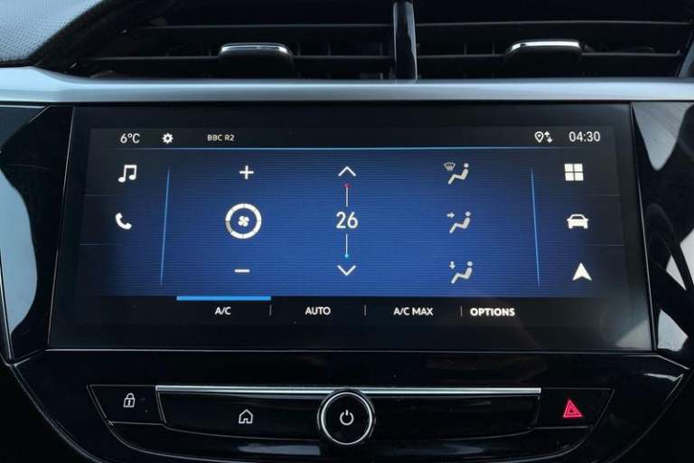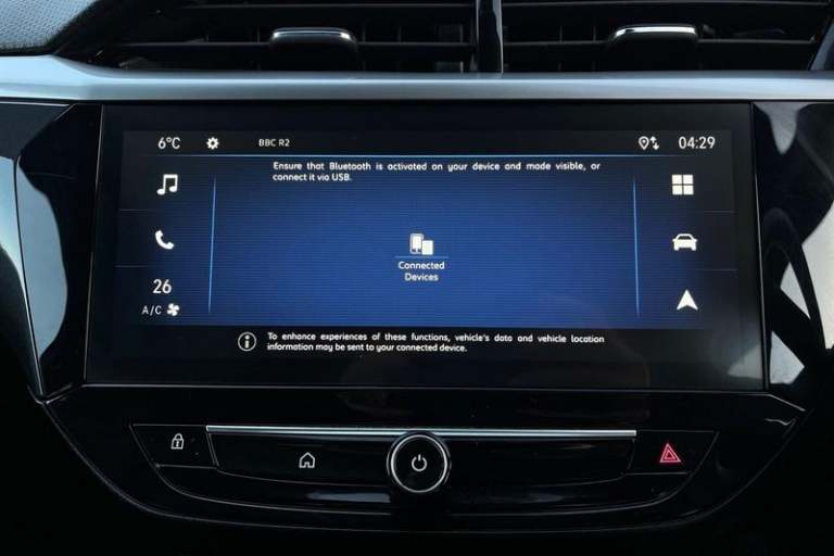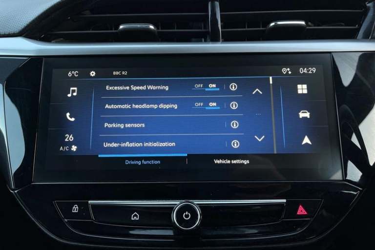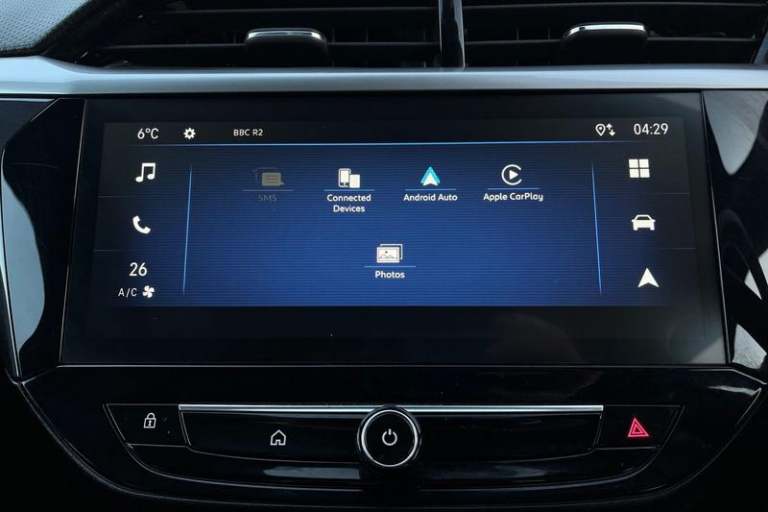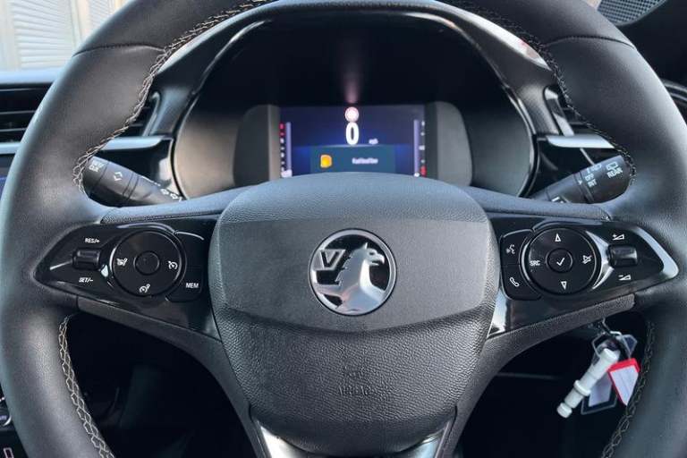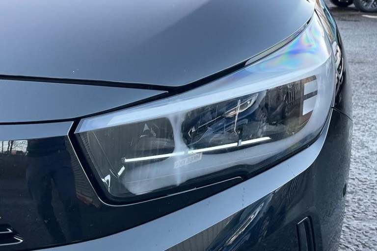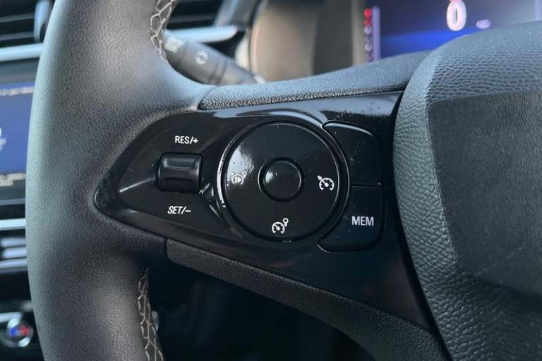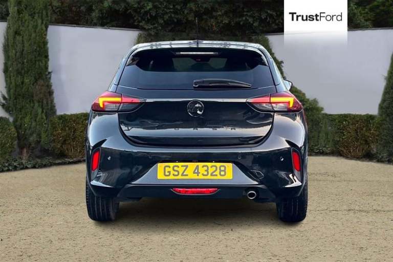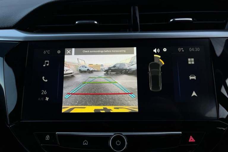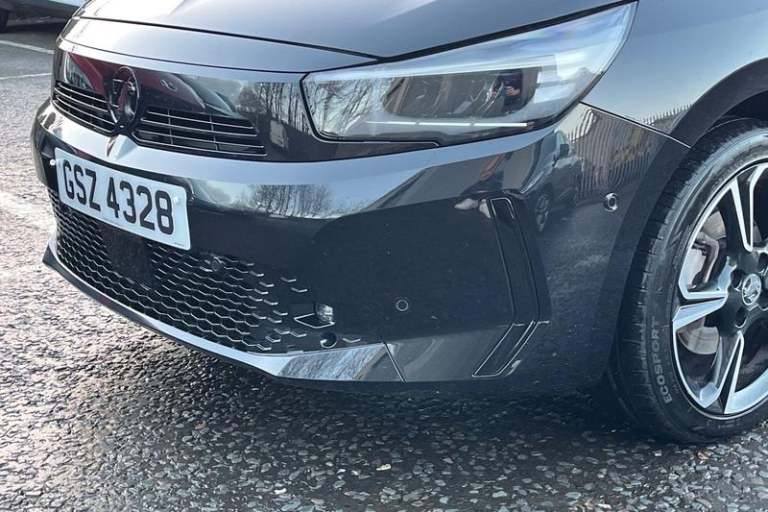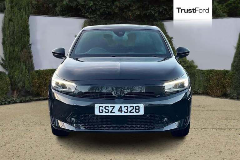130 degree rear view camera, 7 inch digital instrument cluster display, Auto tele unit 3S vehicle communication system, Breakdown call (b-call), Central facia display with digital clock, outside air temperature and audio information, Cruise control with intelligent speed limiter, Driver drowsiness alert system, E-call, Engine oil life indicator, Front and rear parking sensors, Front camera system, Instrumentation - Speedometer, rev counter, low fuel gauge warning light + water temperature gauge warning light, Lane departure warning, Lane keep assist, Lights on audible warning, Multi function trip computer, Pre conditioning of vehicle temperature, RDS with traffic programme, Remote check of battery level programming and charge management, Service indicator, Smartphone projection, Speed sensitive power steering, Speed sign recognition, Sport drive mode selector, Start/stop system, Tailgate, Vauxhall connect box, Vehicle status and information, Wireless Apple CarPlay/Android Auto, Automatic headlight control system, Black door mirror housings, Black Griffin logo and vizor frame, Black lower side window mouldings, Body colour door handles, Body colour front and rear bumpers, Bonnet/headlight/wiper structure, Corsa lettering in tailgate, Dark tinted rear side windows + tailgate window, Electrically adjustable and heated door mirrors, Electrically operated front and rear windows with safety auto reverse and one touch up/down facility, Electrochromic automatic anti-dazzle rear view