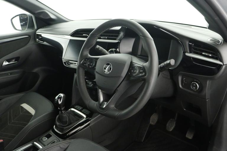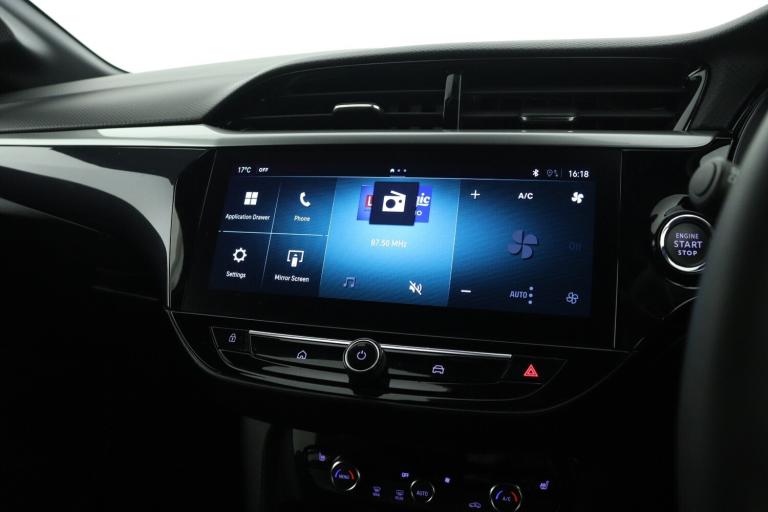 ..180 degree panoramic rear view camera, 2D/3D street level mapping, 7 inch digital instrument cluster display, Auto tele unit 3S vehicle communication system, Breakdown call (b-call), Central facia display with digital clock, outside air temperature and audio information, Cruise control with intelligent speed limiter, Driver drowsiness alert system, E-call, Engine oil life indicator, Enhanced traffic sign recognition, European coverage, Front and rear parking sensors, Front camera system, Instrumentation - Speedometer, rev counter, low fuel gauge warning light + water temperature gauge warning light, Lane departure warning, Lane keep assist, Lights on audible warning, MAP OTA updates, Multi function trip computer, POI (search), RDS with traffic programme, Service indicator, Side blind spot alert, Smartphone projection, Speed sensitive power steering, Speed sign recognition, Sport drive mode selector, Start/stop system, Vauxhall connect box, Voice recognition, Wireless Apple CarPlay/Android Auto, Wireless charger, Electronic returnless fuel system, Petrol Particulate Filter, Under body shield for aero, AM/FM stereo radio, Bluetooth A2DP audio streaming function (Advanced audio distribuition profile), DAB Digital radio, Multimedia Navi with 10-inch touchscreen, Rear USB port, Six speakers, Steering wheel audio, phone and cruise controls, USB type C port, 3rd brake light, Automatic headlamp levelling, Automatic headlight control system, Black DLO, Black door mirror housings, Black Griffin logo and vizor frame, Black lower side window mouldings, Body colour door handles, Body colour front and rear bumpers, Bonnet/headlight/wiper structure, Corsa lettering in tailgate, Dark tinted rear side windows + tailgate window, Electrically adjustable and heated door mirrors, Electrically folding door mirrors, Electrically operated front and rear windows with safety auto reverse and one touch up/down facility, Electrochromic automatic anti-dazzle rear view mirror, Glazed tailgate and heated rear window with wash/wipe facility, Hazard warning lights, Headlamps for left side traffic, High beam assist, High gloss black finish B pillar, Intelli-Lux Matrix LED Headlights, LED daytime running lights, LED front fog lights, LED tail lamp, Rain sensitive windscreen wipers, Rear fog lamp, Rear reversing lights, Rear side wing doors, Rear wiper, Shark fin aerial, Solar heat absorbing windscreen and windows, Sports front and rear body styling for upper and lower bumper design, Two
