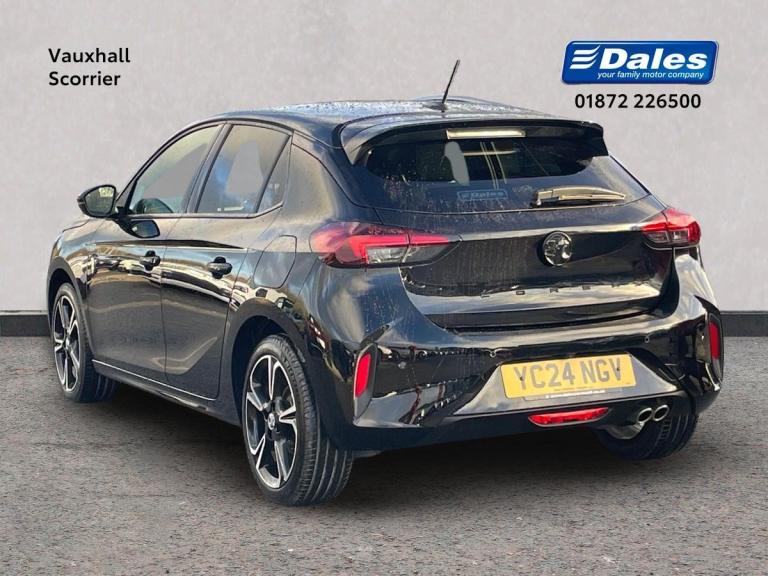 This Vauxhall Corsa 1.2 Turbo GS 5-door Hatchback Auto, registered in 2024 and finished in sleek black, is equipped with a range of modern features to enhance your driving experience. With just 4018 miles on the clock, this Vauxhall boasts 17"" diamond-cut hi-gloss black alloy wheels and a sporty design with elements like alloy effect sport pedals and LED daytime running lights. The interior of this Corsa is both stylish and practical, featuring amenities such as air conditioning, a 7-inch digital instrument cluster display, and a 10-inch touchscreen multimedia system with smartphone projection. The cabin offers comfort with Banda cloth upholstery, a leather effect steering wheel, and adjustable front seats. Safety is paramount in this vehicle, as it includes features like automatic emergency braking with pedestrian detection, lane departure warning, front and rear parking sensors, and a full complement of airbags. Additionally, the Corsa offers convenience features such as cruise control, automatic headlight control, rain-sensitive windscreen wipers, and an electronic parking brake. This Vauxhall Corsa is a well-equipped and modern hatchback that provides a comfortable and safe driving experience, making it a stylish choice for your daily commutes or weekend adventures.