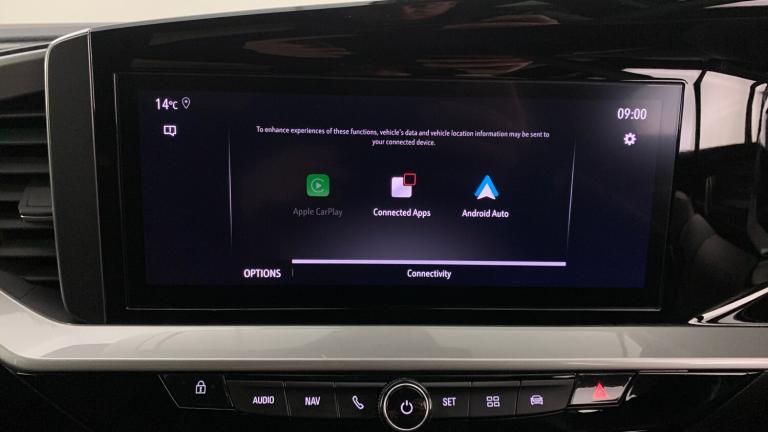 2 Rear USB ConnectionsFront USB ConnectionVauxhall ConnectAdaptive Cruise ControlDigital Central Facia DisplayDriver Drowsiness AlertDriver Information DisplayExtended Traffic Sign RecognitionFront and Rear Parking Distance SensorsMulti-Function Trip ComputerPanoramic Rear View CameraSide Blind Spot Alert and Flank GuardTyre Pressure Monitoring SystemBlack Front-Rear Bumper InsertsBlack Griffin Logo and Vizor FrameBumpers - Body Colour Front and RearChrome Effect Upper Window MouldingsDoor Handles - Body ColouredIntegrated Black Tailgate SpoilerAutomatic Headlight Levelling SystemAutomatic Lighting Control with Tunnel DetectionHigh Beam AssistIntelliLux Matrix LED Headlights with Advanced Forward Lighting and Anti-glare BeamLED Daytime Running LightsLED Front Fog LightsLED Tail Lights12in Digital Instrument ClusterArmrest - Front Centre with StorageAutomatically Dimming Anti-Dazzle Rear-View MirrorBlack Facia with Silver Trim InsertsBlack HeadlinerElectronic Climate ControlHeated Front SeatsInterior Courtesy LightsLight Grey Trim Inserts on Front DoorsMoveable Boot FloorRain Sensitive Windscreen WipersRake and Reach Adjustable SteeringSteering Wheel - Flat Bottom - Leather EffectSteering Wheel Mounted Audio ControlsStorage Pockets on Front Seat Backs10in Multimedia Pro Navi12V Electrical Accessory Socket - Front18in Alloy Wheels - Bi-ColourBlack Door MirrorsDigital Fuel Gauge with Low Fuel Level Warning LightDigital Speedometer and Rev CounterDigital Water Temperature Gauge with Warning LightDoor Mirrors - Electrically Adjustable-Heated and Power Folding with Puddle LightDrivers and Front Passengers Seat - Six-Way AdjustableDrivers Side Power Lumbar Support and Massage SeatElectric Windows - FrontEmergency Tyre Inflation KitForward Collision Alert - All SpeedFront Map Reading LightsKeyless Entry - Keyless StartLuggage Compartment LightingRoof - BlackShift - Up-Down Indication LightSide Bolsters - Premium Leather-Effect - BlackSpeed LimiterSteering Wheel - HeatedWindows - Dark Tinted RearSingle Pinion Electrical Power SteeringSports Switch with Engine Sound EnhancementABS - Anti-Lock Braking SystemAirbag - DriverAirbags - Deactivation Switch For Front Passengers and Side ImpactAirbags - Front PassengerAirbags - Front Seat Side-ImpactAirbags - Full Size CurtainCBC - Cornering Brake ControlChild Proof Locks on Rear DoorsEBD - Electronic Brakeforce DistributionEmergency Brake