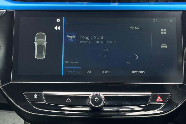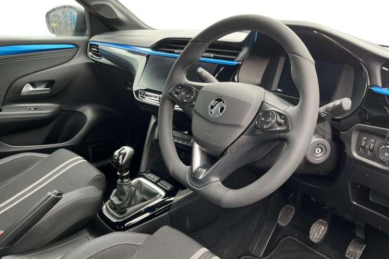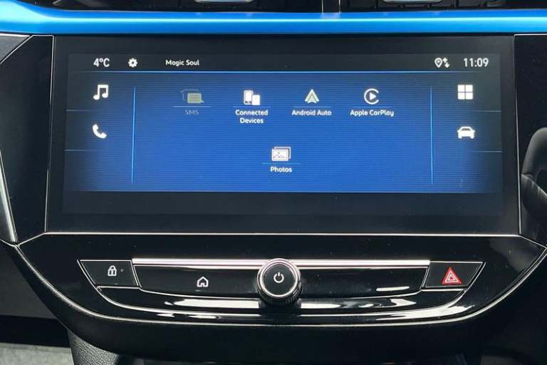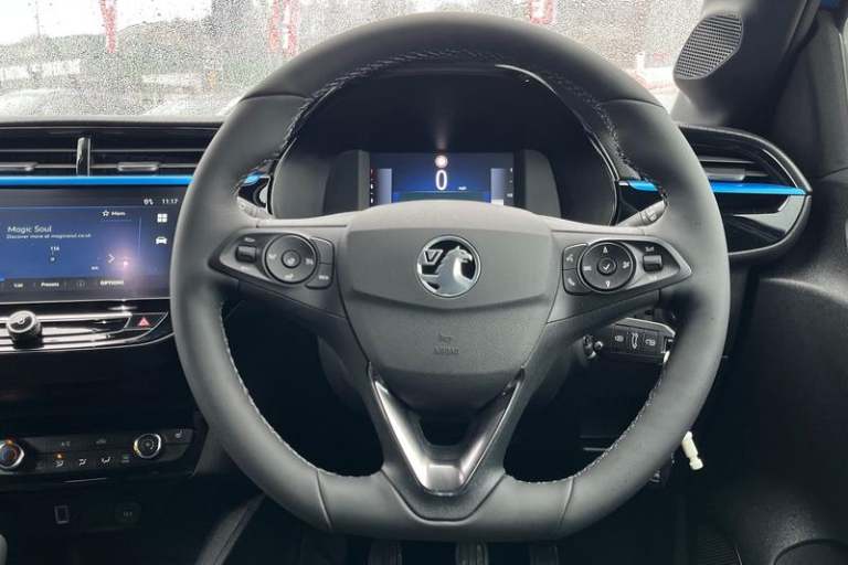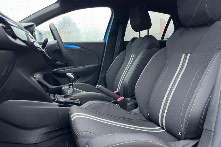 7 inch digital instrument cluster display, Breakdown call (b-call), Central facia display with digital clock, outside air temperature and audio information, Cruise control with intelligent speed limiter, Driver drowsiness alert system, E-call, Engine oil life indicator, Front camera system, Instrumentation - Speedometer, rev counter, low fuel gauge warning light + water temperature gauge warning light, Lane departure warning, Lane keep assist, Lights on audible warning, Multi function trip computer, Pre conditioning of vehicle temperature, RDS with traffic programme, Rear parking distance sensors, Remote check of battery level programming and charge management, Service indicator, Smartphone projection, Speed sensitive power steering, Speed sign recognition, Sport drive mode selector, Start/stop system, Tailgate, Vauxhall connect box, Vehicle status and information, Wireless Apple CarPlay/Android Auto, Automatic headlight control system, Black door mirror housings, Black lower side window mouldings, Black rear griffin badge and model lettering, Body colour door handles, Body colour rear bumper, Bonnet/headlight/wiper structure, Corsa lettering in tailgate, Dark tinted rear side windows + tailgate window, Electrically adjustable and heated door mirrors, Electrically operated front and rear windows with safety auto reverse and one touch up/down facility, Electrochromic automatic anti-dazzle rear view mirror, Flexible roof mounted aerial, Glazed tailgate and heated rear window