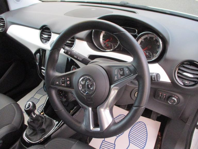 THJIS VEHICLE COMES WITH 1 YEARS MOT, WARRANTIED, SERVICED AND FULLY VALETED. A BEAUTIFUL, 2 OWNER, EXTREMELY LOW MILEAGE, HIGH SPECIFICATION 1.2i GRIFFIN EXAMPLE OF THIS POPULAR VAUXHALL ADAM - STUNNING IN A BRIGHT WHITE FINISH WITH BLACK ROOF, MIRRORS AND 8 SPOKE ALLOYS + JUST 6,697 MILES !!!! ( SIX THOUSAND ) !!!!! GREAT SPECIFICATION INCLUDING HALF LEATHER SEATS, TOUCH SCREEN INCORPORATING SAT-NAV, DAB RADIO, AUX. PLAY AND VOICE CONTROLLED BLUETOOTH. CITY PACK FOR LIGHTER STEERING IN TIGHT SPACES, CRUISE CONTROL, AIR-CON, ELECTRIC WINDOWS AND MIRRORS, LEATHER COVERED STEERING WHEEL AND GEAR LEVER, SPOTS ISOFIX. LOW INSURANCE GROUP 3E - IDEAL FIRST CAR OR FAMILY SECOND CAR.