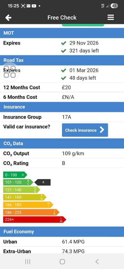 Our vehicle history check is provided for guidance only. Please check all the details with the seller before purchasing