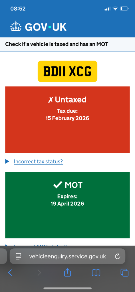 This vehicle has not been reported stolen, scrapped, exported or flagged as unroadworthy.