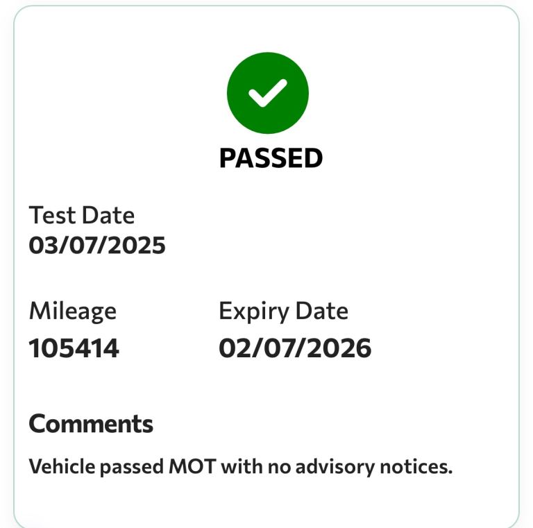 Our vehicle history check is provided for guidance only. Please check all the details with the seller before purchasing