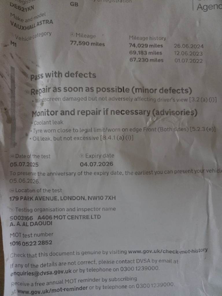 • MOT valid until June
