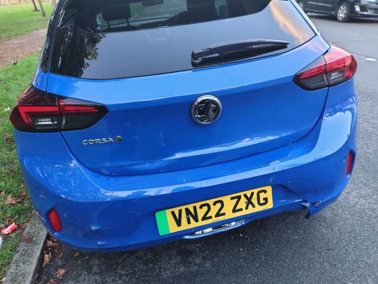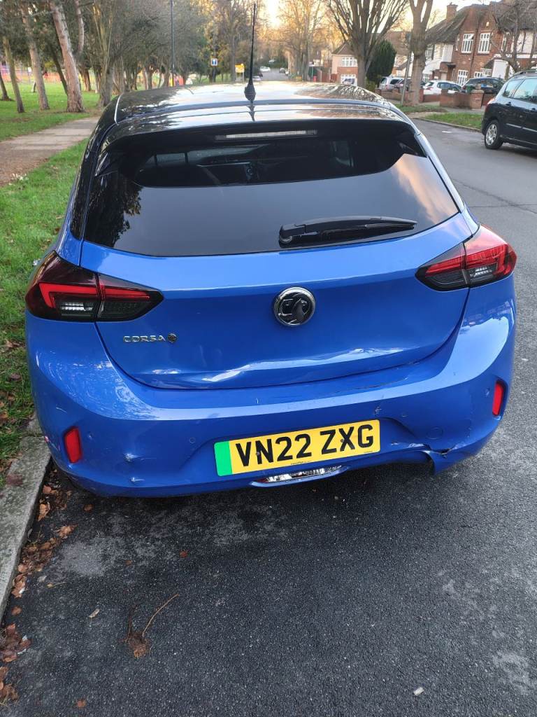 Vauxhall Corsa 2022 (electric), in good working condition, slight damage to the back bumper and front grill as can be seen from pictures but apart from that the car is very clean.