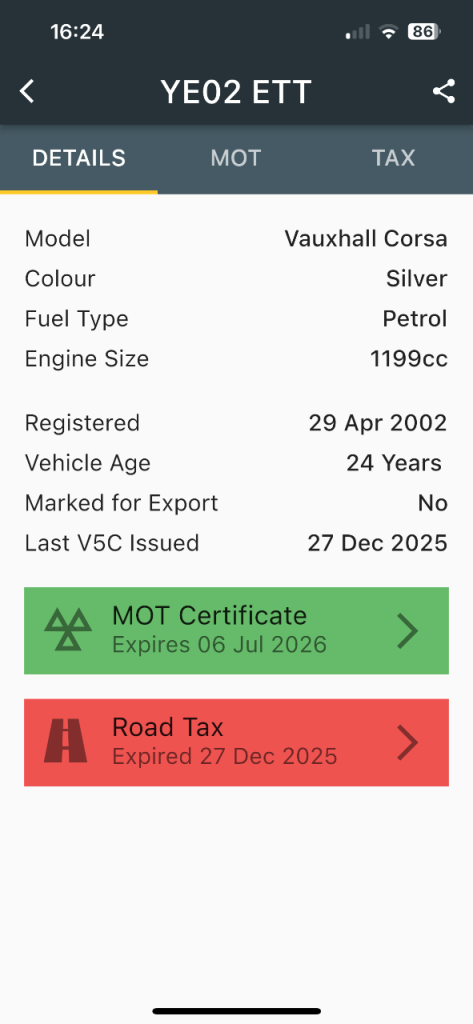 This vehicle has not been reported stolen, scrapped, exported or flagged as unroadworthy.