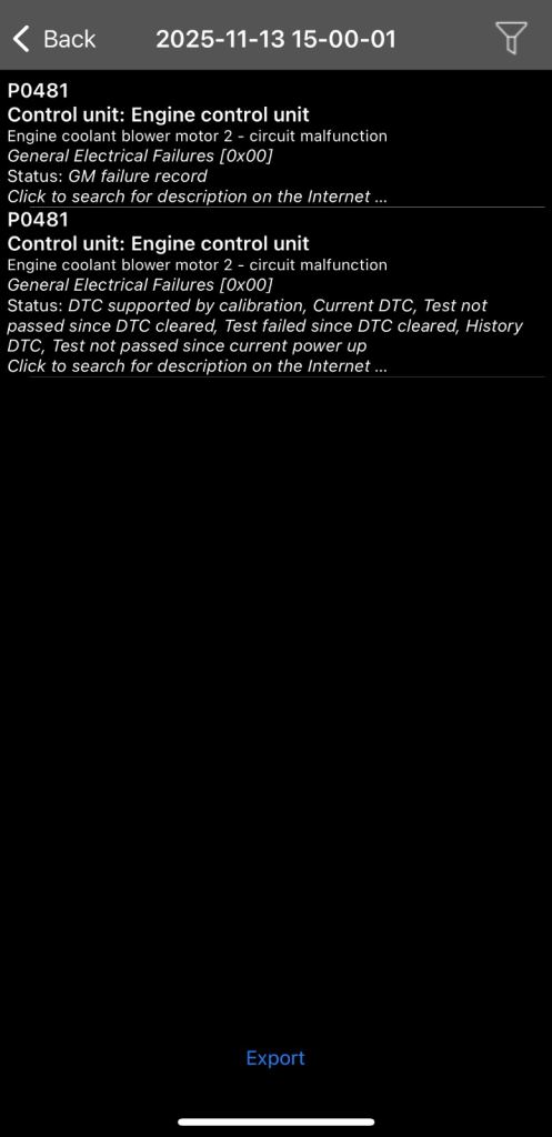 The spanner light is also lit, the reason for this is I had the fan changed and it is running on full even from startup, and I have added the code picture to explain this.