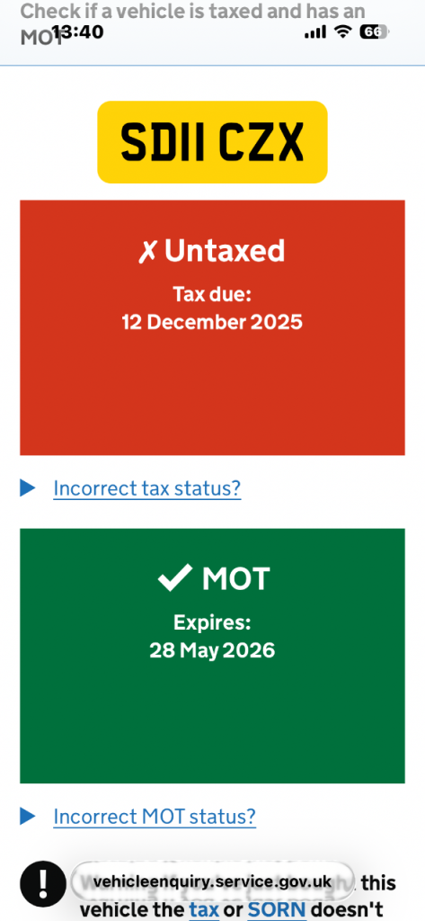 This vehicle has not been reported stolen, scrapped, exported or flagged as unroadworthy.