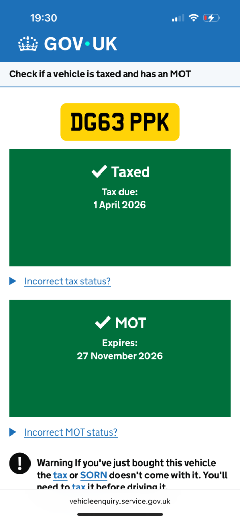 This vehicle has not been reported stolen, scrapped, exported or flagged as unroadworthy.