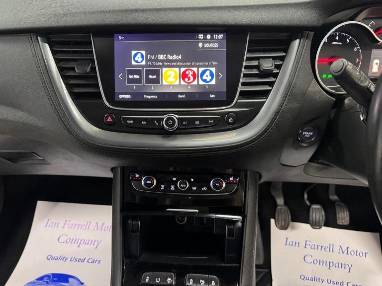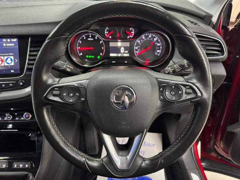 This 2018 Vauxhall Grandland X Turbo Sport Nav boasts a full service history, offering peace of mind alongside its impressive features. This Euro 6 compliant 1.2 litre petrol model comes with a 3 month warranty and a 12 month MOT provided on purchase. The Sport Nav trim includes the convenient Park and Go Pack One with front and rear parking sensors, and the Navi 5.0 Intellilink touchscreen navigation system, compatible with Android Auto and Apple CarPlay, alongside Bluetooth connectivity. Automatic lighting control and the Sight and Light Pack ensure visibility is always optimal, while the Side Blind Spot Alert provides an extra layer of safety. The Vauxhall Grandland X Turbo Sport Nav offers several advantages over similar vehicles. Its low CO2 emissions make it an environmentally conscious choice, and its acceleration from 0 to 60mph in just 9.5 seconds provides a responsive driving experience. Furthermore, it sits in a low insurance group, potentially saving you money. You'll also appreciate the generous boot space, perfect for luggage or shopping, and the ease of use provided by the integrated infotainment system.
