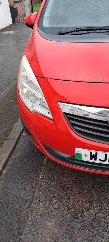Here I have my red Vauxhall Meriva B. As you can see from my pictures needs a repair to lower part of Bumper and wing.Absolutely does not detract from how cars drives. Drives excellant. Easy repair for anyone . Ive not bothered as have another car now MOT 14TH OCTOBER 2026. In mot Advisory for slight oil leak . is the rocker cover gasket. .1.4 turbo excite model Ulez free no charge. owned for last 4 years plus.