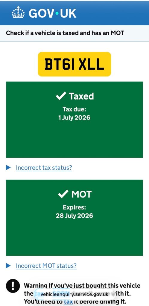 This vehicle has not been reported stolen, scrapped, exported or flagged as unroadworthy.