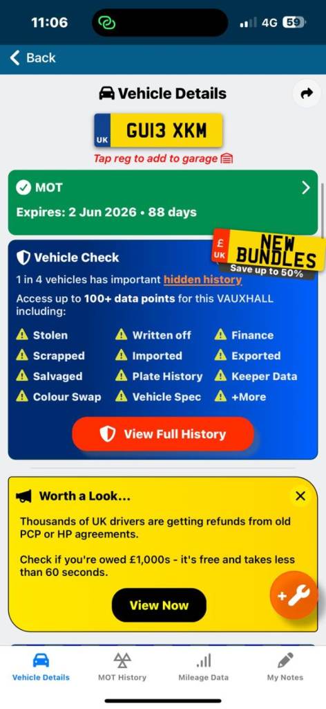 Buy the full report for guaranteed data accuracy, outstanding finance, valuation, milage check & VIN match for £9.99 (normally £19.99)
