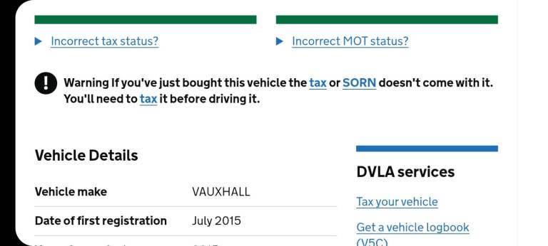This vehicle has not been reported stolen, scrapped, exported or flagged as unroadworthy.