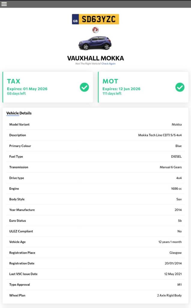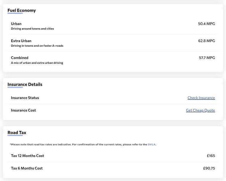 Our vehicle history check is provided for guidance only. Please check all the details with the seller before purchasing