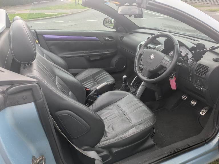 Excellent example, genuine low 38000 miles. In good overall condition, a few knocks and scratches but nothing too serious. Purple colour is vinyl, not respray, can be removed. 1.4L Petrol manual. Roof fully working and serviced in 2024 by Carrera. Heated black leather seats. FM/CD/AUX stereo, supports MP3 and comes with after market BT handsfree kit. Good service history and serviced annually for last few years including new front discs and pads. Plenty of paperwork, MOT until March 2026.