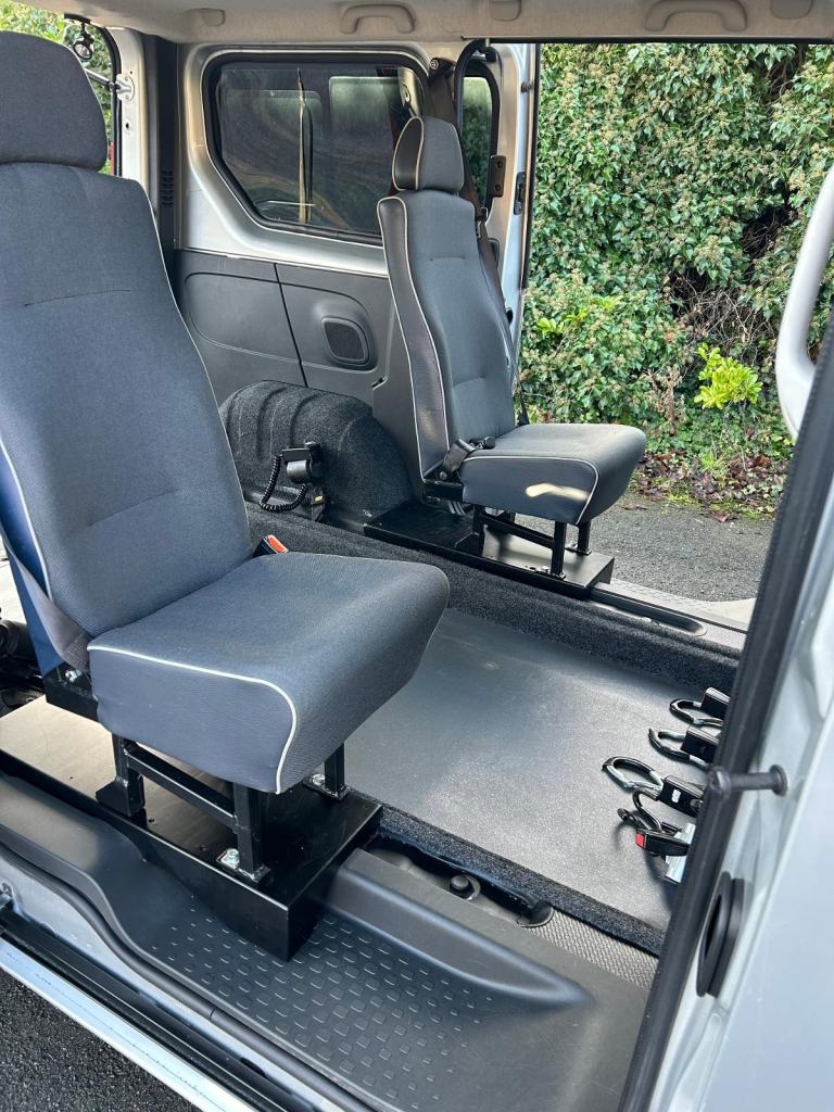 This Vauxhall Vivaro is finished in silver and was converted by Gowrings the large lowered floor area can accommodate the largest wheelchair or scooter with ample room for luggage or equipment.Once inside the vehicle has five seats plus up to two wheelchair users. Wheelchair or scooter entry is gained by the rear ramp aided by electric belts for quick and easy boarding. Our Vauxhall Vivaro is supplied with our 3 month Warrantywise warranty which includes AA roadside assistance, has recently been serviced and MOT until July 2026. Free UK mainland delivery, please call for an appointment