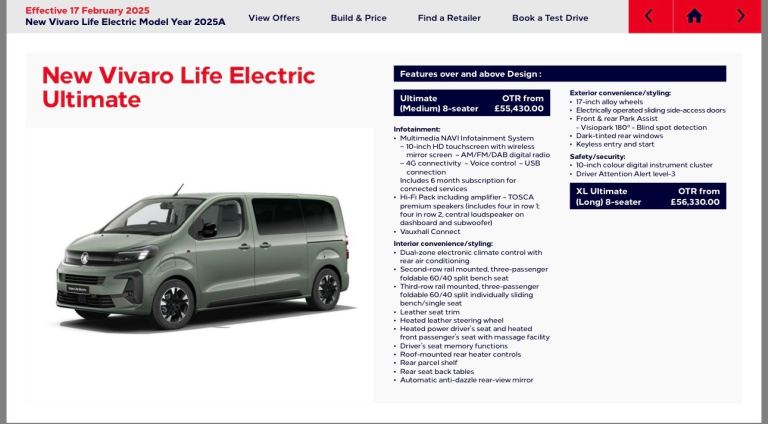 The 2025 Vauxhall Vivaro Life Electric offers an 8-seater configuration with redesigned interiors, new tech like 10-inch screens, and improved comfort
