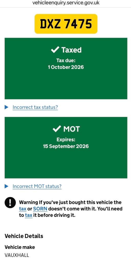 This vehicle has not been reported stolen, scrapped, exported or flagged as unroadworthy.