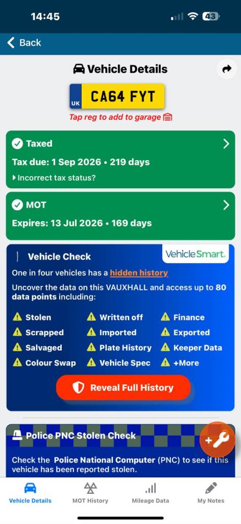 Buy the full report for guaranteed data accuracy, outstanding finance, valuation, milage check & VIN match for £9.99 (normally £19.99)
