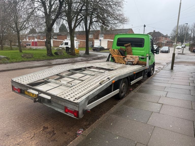 IVECO DAILY 2018 4100 KG TON FLAT BED RECOVERY TRUCK ELECTRIC WINCH FULLY INSURED EXPERIENCE DRIVER HIVIS REFLECTED JACKET SAFETY LONG OR SHORT DISTANCE 24 HOURS RECOVERY SERVICE AVAILABLE BASED NEAR M1 JUNCTION 21,