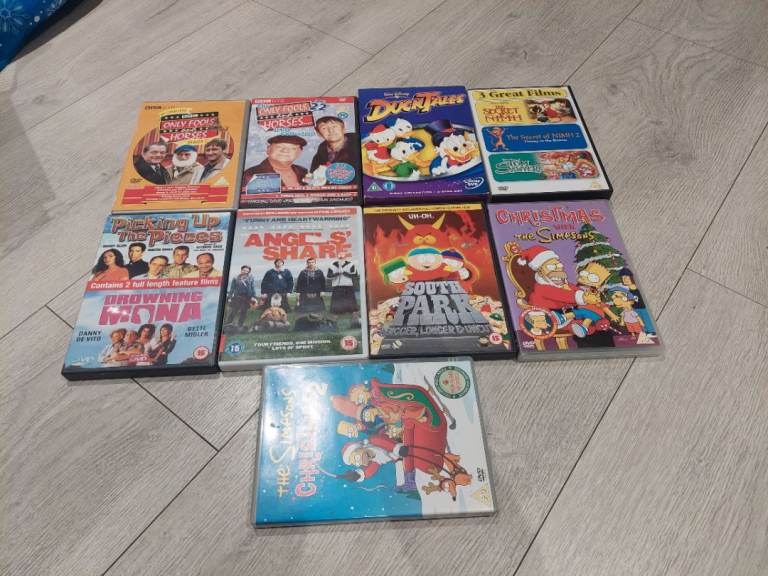 Including loads of only fools and horses which has a few rare dvds from old magazine from the 90s, South Park movie, angels share, simpsons plus a very hard to get 3 disc boxset of N.I.H.M 1 2 AND TOM SAWYER