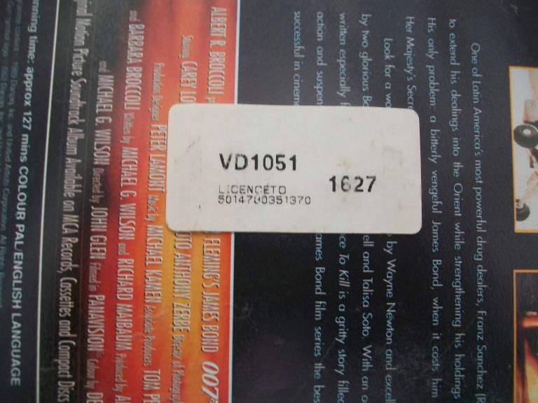 James Bond New Video Licence to Kill 1989 Edition.VHS Tape Inside Sealed