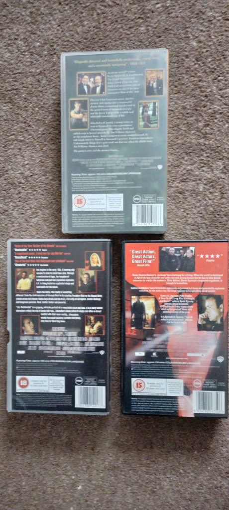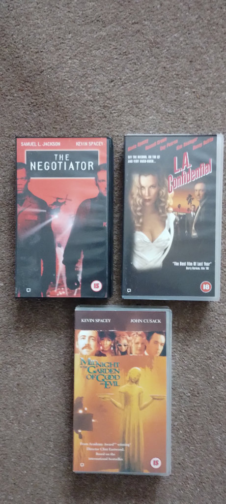 VHS BOXED SET OF 3 VIDEOS - Kevin Spacey films - LA CONFIDENTIAL, THE NEGOTIATOR & MIDNIGHT IN THE GARDEN OF GOOD AND EVIL.